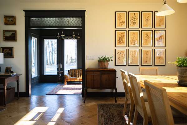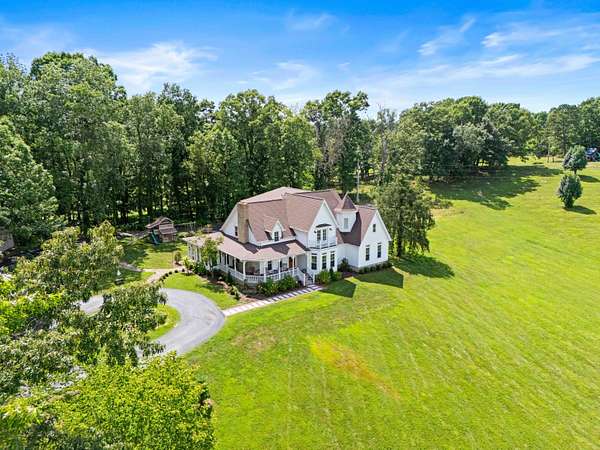 Welcome to your dream home, a true masterpiece that blends luxury, functionality, and design like no other. This one-of-a-kind property has been reimagined with the finest finishes, impeccable attention to detail, and a timeless sense of style. Situated atop a hill on 5.59 acres of beautifully rolling land, the home offers complete privacy and tranquility. As you approach the property, either through the oversized 3-car garage or the stunning foyer, you'll immediately recognize that this home is unlike anything you've ever seen. From the rich herringbone wood floors and natural stone accents in the bathrooms to the elegant European lighting fixtures, custom hardware, wood beams, custom glass work and intricate moldings, every inch of this home has been thoughtfully designed. With 6 spacious bedrooms and 4.5 luxurious bathrooms, this ~6,100 sqft home provides abundant space for comfort and convenience. The built-in cabinetry just off the garage offers an ideal spot for unloading the day, while the large walk-in closets in nearly every bedroom provide ample storage. Custom vanities in each bathroom further elevate the home's sophisticated feel. No detail was overlooked in ensuring. that both functionality and serenity are woven throughout the design. This is your opportunity to own a new-construction-like home, but with finishes that go far beyond typical builder-grade standards. Step outside to enjoy serene mornings on the expansive front porch, overlooking your own private pond, or retreat to the backyard to unwind around the fire pit. The meticulously manicured landscaping can be admired from every angle. For camping enthusiasts, there's even a complete camper hookup on the property. Inside, there's something for everyone: a moody, yet inspiring office; a chef's kitchen; spa-like bathrooms; a cozy den with a pool table; and a toy room complete with a secret passageway. Every aspect of this home has been updated, from the roof and windows to the plumbing, electrical systems, walls, and floors. This is the home you've only seen in Pinterest and Instagram, and now it's available for you to move into - without the need to travel the world to gather its globally inspired finishes.
