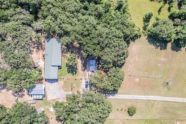 INCREDIBLE PRICE IMPROVEMENT, MOTIVATED SELLERS at this gorgeous 7.44 acre farm with endless possibilities for suitability considering the hay pasture positioned before the 3 bedroom, 2 bath, 2 car garage ranch style home, covered RV and boat parking with 220 power and 50 amp breaker, and a variety of multi-purpose out buildings. Follow the long gravel driveway to the well kept, modest home boasting many desirable features such as a metal roof, an open floor plan, separate primary bedroom and ensuite, generously sized secondary bedrooms, a large laundry room, lots of storage, and updated flooring. Enjoy private tranquility from the substantial covered front porch or the patio out back. The immediate front and back yards have been cross fenced for pets and there is a temporary fence out front for a garden area. Take a dip in the 12'x25' above ground pool with a gas powered heater for early and late season swimming after a quick change in the pool shed appointed with electricity. There are out buildings well suited for the private well, pool accessories, extra storage, hobbies, chickens, gardening, et cetera. The acreage is also well kept, ready for your animals and your big dreams. Wear your boots and come walk the fenced property lines and see the many reasons why you should call this place home. We encourage you to sit, listen, and enjoy the view from the front porch. This place is truly special; don't miss your opportunity to own a piece of Texas country!