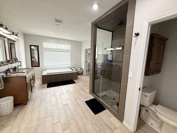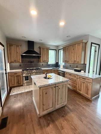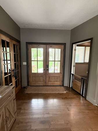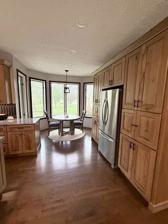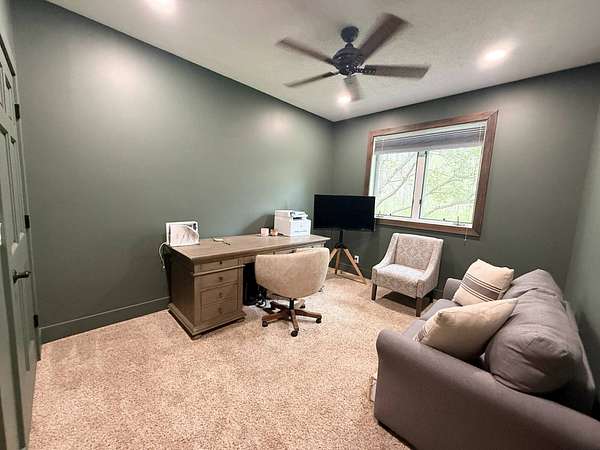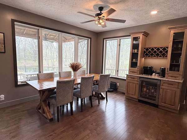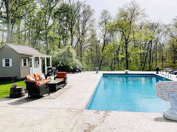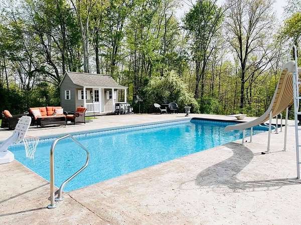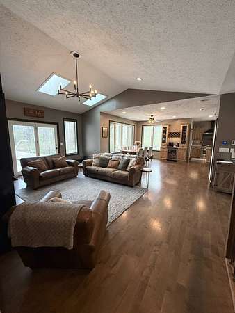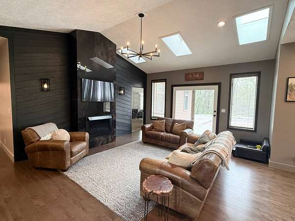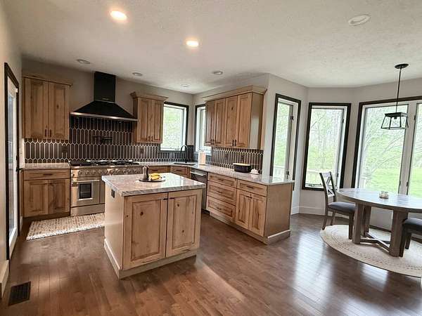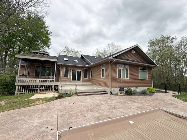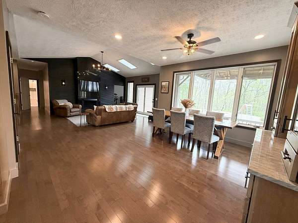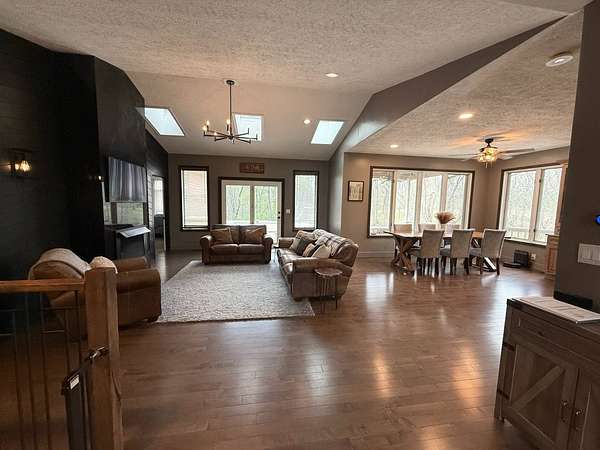 Sprawling, custom-built ranch tucked into a private, wooded setting-this one checks all the boxes. Step inside to an open-concept layout with vaulted ceilings, skylights, and an abundance of natural light. The kitchen is the heart of the home, featuring custom wood cabinetry, a large center island, stone countertops, and a statement range hood that anchors the space. It flows seamlessly into the dining area and living room, where a sleek large format porcelain fireplace wall creates a warm, modern focal point. The main level offers a functional split-bedroom design, including a spacious primary suite with a large bath and soaking tub. You'll also find a dedicated office, (or bedroom, if desired!), a well-designed mudroom with built-ins, and a separate laundry room that actually makes sense for everyday living. Downstairs adds even more usable space with a finished basement-perfect for entertaining, movie nights, or a hangout zone-with a custom bar area already in place. Outside, enjoy peaceful views from the deck overlooking mature trees and nature-ideal for morning coffee or unwinding at the end of the day. Highlights include: Open-concept layout with vaulted ceilings & skylights, Custom cabinetry throughout, Large kitchen island + high-end finishes including a 48" stovetop and statement range hood, Statement fireplace feature wall. Main-level:(3) bedrooms including master suite, kitchen, laundry room, guest bath. Finished basement with bar area and movie theatre projector room (and an additional 2 bedrooms), Private, wooded setting with deck, two ponds, an inground pool, and a 32x45 pole barn. Pre-approval required prior to showings.