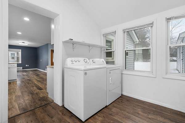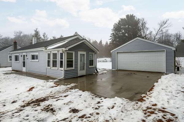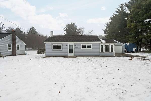 Move in ready ranch home showcasing an open floor plan and wonderfully updated! This quaint home features a light filled living room that opens up to your eat-in kitchen with lots of cabinets, 3 dimensional formica countertops, tile backsplash and stainless steel appliances. Two cozy bedrooms and a nicely updated bathroom. The side entry of the home is a great drop zone that is also the laundry room and is conveniently located near the detached 2 car garage which also has an 8x8 shed and lean to off the back for additional storage. Sitting on 1.5 acres with a very deep backyard there is plenty of room for outdoor fun. Updates include; Some interior paint, ceiling fans, plumbing fixtures in 2025; Blinds 2023; Kitchen remodel, interior paint, bathroom updates, washer and dryer 2022. This home is a great value with all appliances included, low Township taxes, low Jackson County taxes off a paved road with an easy commute access to 94.