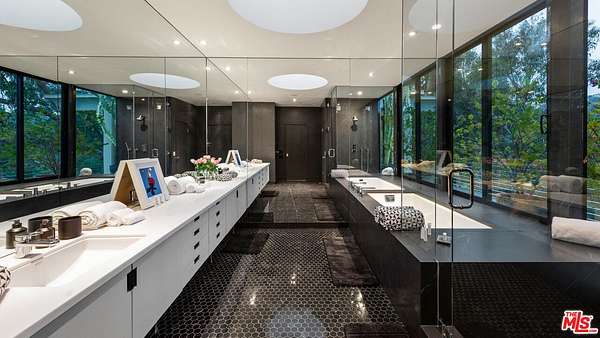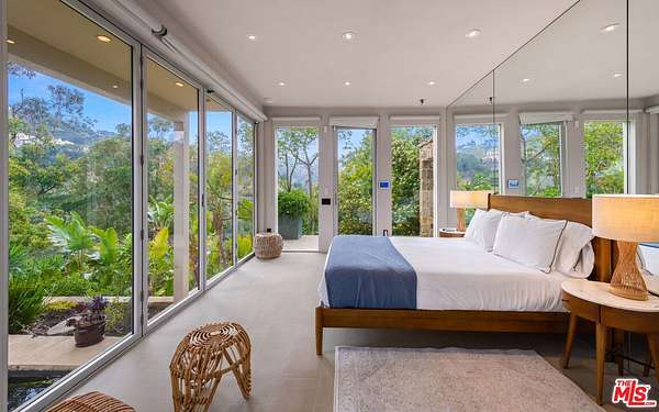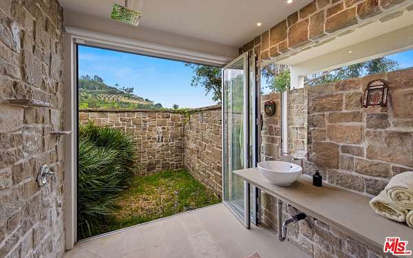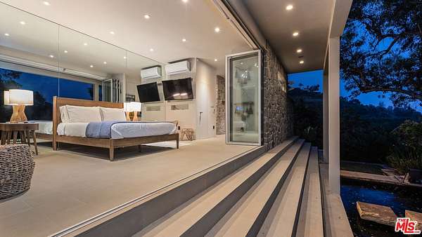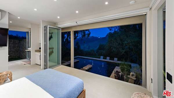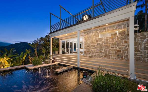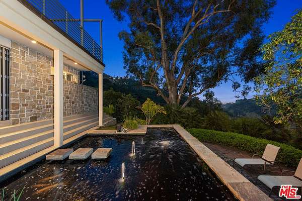 Available fully furnished and turnkey for short, midterm, or long term lease! Rustic and urbane, old-world and high tech, where rural estate meets downtown elegance in this once in a lifetime sensory immersion experience. Escape from ordinary down the a private driveway to the gravel motor court, earthy stone fascia, and arboreally adorned grand entrance to the exquisite execution of this contemporary hillside estate. Natural light will greet you in virtually every corner of the dramatically-styled indoor-outdoor open plan living spaces with floor to ceiling glass walls that reveal resort-style landscaping and marvelous canyon views. You will cherish every moment in the spacious living room with its uplifting fireplace, family room, dining room, gourmet kitchen with professional appliances, custom cabinetry and breakfast, and covered patio. Indulge your inner sun-worshiper on the rear lawn and wood deck or beside the shimmering pool in the viewing pavilion. Retreat to the opulent primary suite, nestled in pastoral splendor and featuring a fireplace, large walk-in closet and dressing area, and picturesque bath with dual basins, spa tub, and steam shower. A guest/maid suite with bath and laundry room is located off the kitchen and two additional guest rooms with a shared bathroom are available for your family and friends. A detached guest house with bedroom, bath, kitchenette and private patio with koi pond is available for extra special guests or private getaways. Expertly decorated with curated artwork and careful attention to the balance between color and texture and light and dark, as you ensconce yourself in a perpetual source of positive energy day and night, whether you're entertaining, working, or relaxing, alone or with family and friends. Located on a cul-de-sac off of Stone Canyon and tucked away in the gorgeous hills of Bel Air, this one-of-a-kind domicile is an encounter to remember.