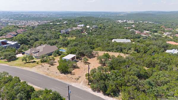 Set atop a scenic hill overlooking Camp Bullis, this .88-acre lot offers unmatched views that stretch for miles. From the ground, you can see the iconic Tower of the Americas, and during celebrations, enjoy spectacular fireworks shows from multiple locations, including Fiesta Texas, SeaWorld, and downtown San Antonio - all from the comfort of your future home. A level homesite has already been carved out, making it ready for your dream build, and architectural plans for a stunning 3-story residence are available to convey with the property. Surrounded by mature trees and natural beauty, the land offers a serene setting. Septic installation will be required. Seize the opportunity to build a one-of-a-kind home where every day feels like a getaway - with the best views in town as your backdrop.