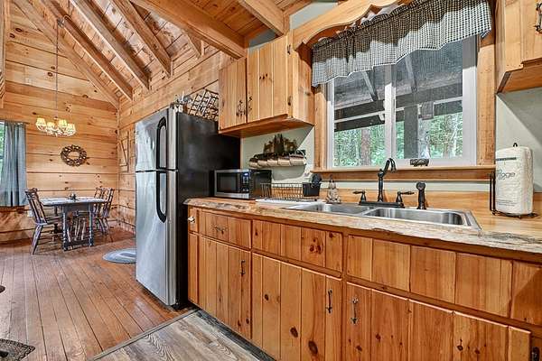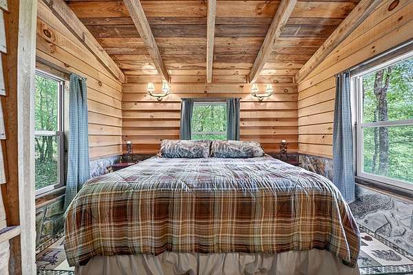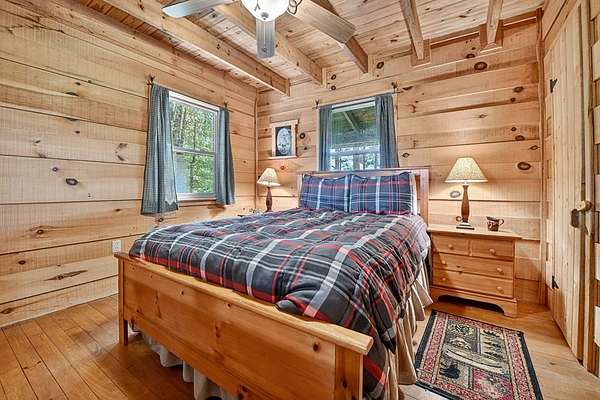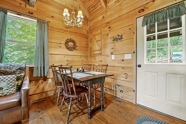 End of the road privacy and year-round layered mountain views--No Steep Roads! This beautifully maintained 3BR/2BA cabin offers the perfect balance of peace, comfort, and accessibility. Tucked away on a private oversized lot in desirable Epworth, enjoy stunning year-round mountain views with no steep inclines to access the property. Currently a successful short-term rental, this property will be sold turn-key, fully furnished and ready for immediate enjoyment or continued income potential. Inside, you will find a warm and inviting interior featuring gas log fireplace, open-concept living, and spacious bedrooms. Outside, a cozy fire pit area and full-length porches invite you to take in the panoramic view while relaxing in the hot tub or enjoying your morning coffee from the front porch rocking chairs. This home has been well maintained and updated throughout the years, including metal roof, double-pane insulated windows, HVAC, water heater, 3BR permitted septic, live edge pine countertops, barnwood style tile shower, updated lighting, appliances, and plumbing fixtures, European dual flush commodes, shower door enclosures, and new LVT flooring in the kitchen and bath. Easy access and complete privacy all while being just minutes from the Cohutta National Forest, Jacks River Falls, hiking trails, and all the dining, shopping, and entertainment that downtown Blue Ridge has to offer. Do not miss this rare opportunity for a true mountain retreat with proven rental performance!