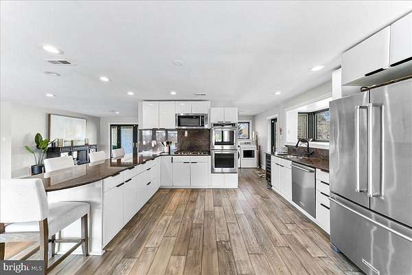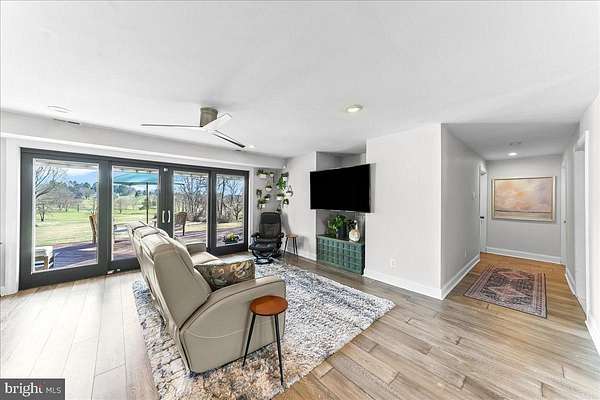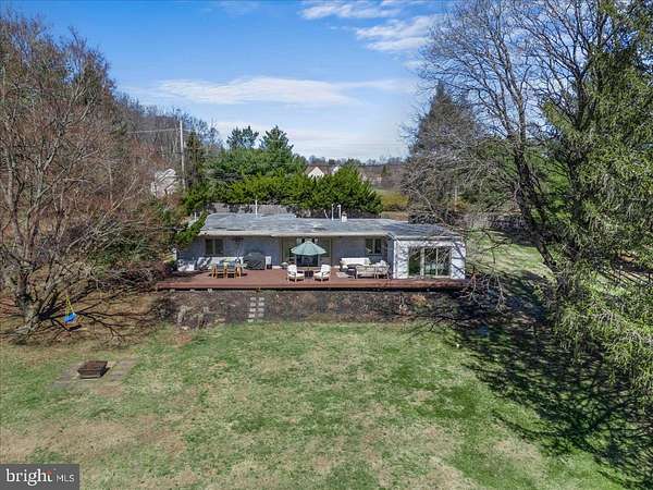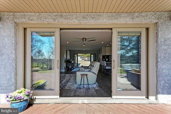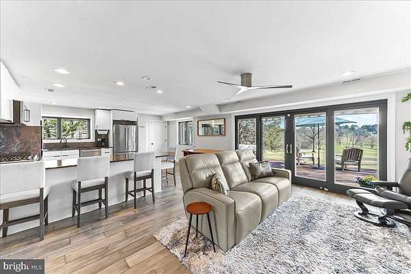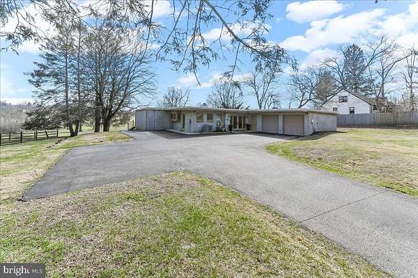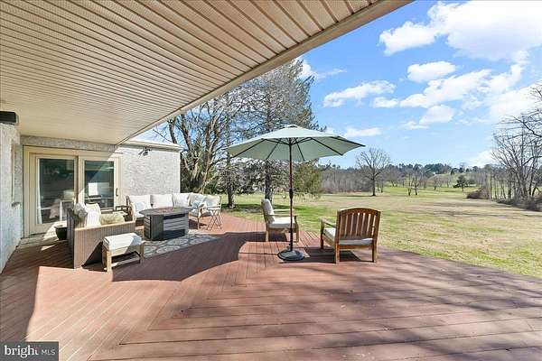 Welcome Home to 1056 Lenape Rd. This 1950s-era ranch is set on a picturesque 1.6-acre property located in desirable East Bradford Township. Perfectly positioned backing to the 7th fairway at Radley Run Country Club, this home offers a rare combination of easy one-level living, modern interior updates, and an exceptional setting. The open floor plan is designed to create a versatile layout for both entertaining and everyday comfort. An impressive foyer leads into a spacious great room with sliding glass doors that open to an expansive deck spanning the entire length of the home, ideal for enjoying scenic golf course vistas and peaceful surroundings. The updated kitchen features granite countertops and backsplash, a breakfast bar with seating for four, a built-in double oven and separate gas cooktop, ample cabinetry and counter space, along with an additional eating area. The property offers three bedrooms and two full baths. The primary bedroom features a walk-in closet and two sets of sliding glass doors that provide private access to the deck and bring in abundant natural light. The hall bath is complete with a whirlpool tub, glass-enclosed shower with dual shower heads, and double vanity. Two additional spacious bedrooms each have large closets, one with an en suite full bath. Outside, the two-car garage and oversized driveway allow for plenty of parking and turnaround space. Mature trees accent the property, providing scenic beauty in every season. Ideally located just a short drive from historic downtown West Chester and the rolling hills and trails of the 571-acre Stroud Preserve, this special home offers a quiet golf course setting paired with privacy and proximity.