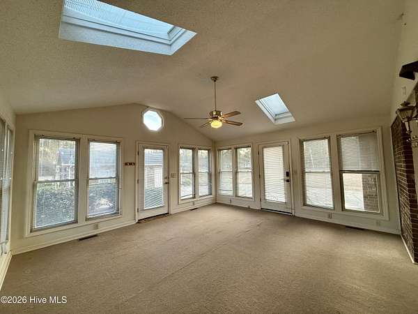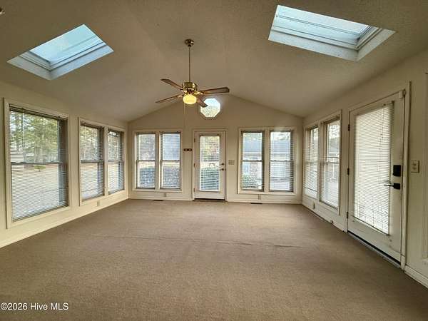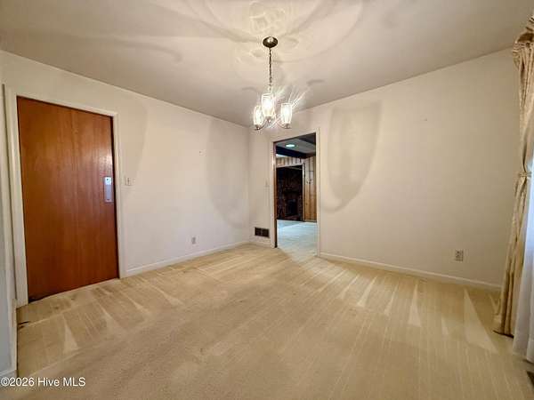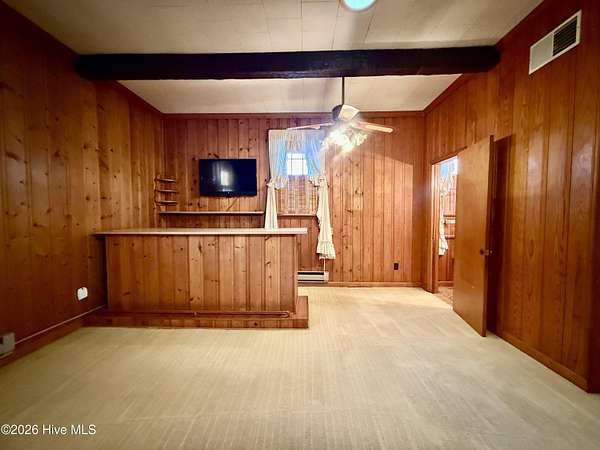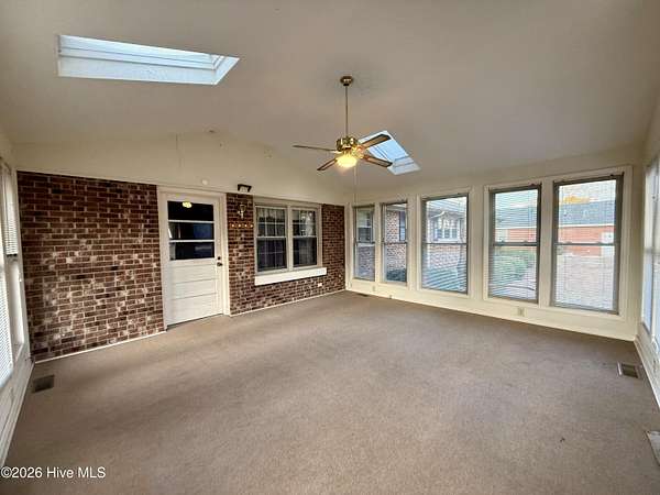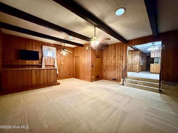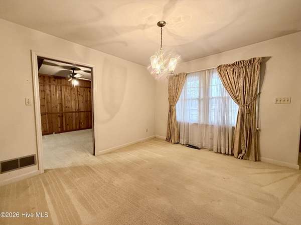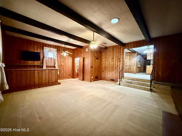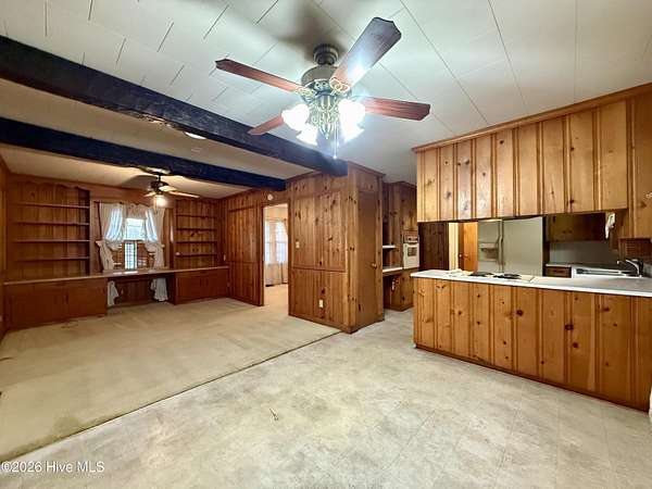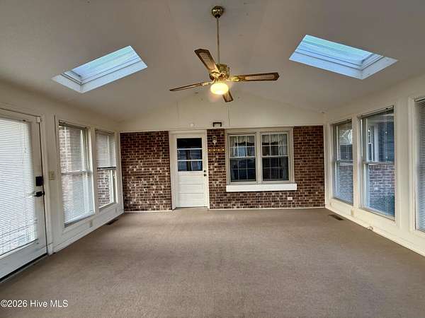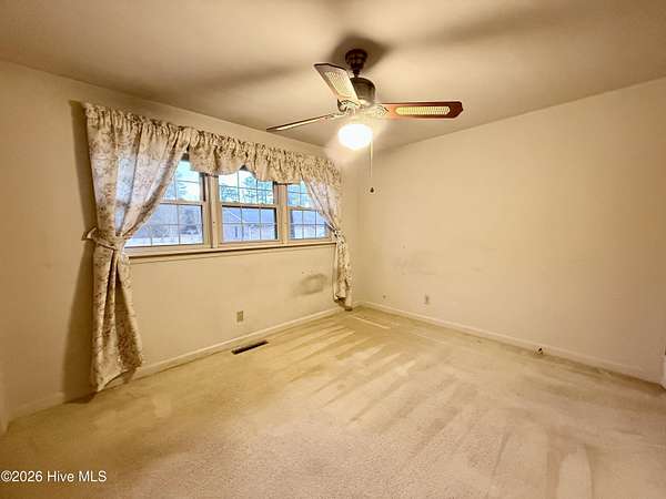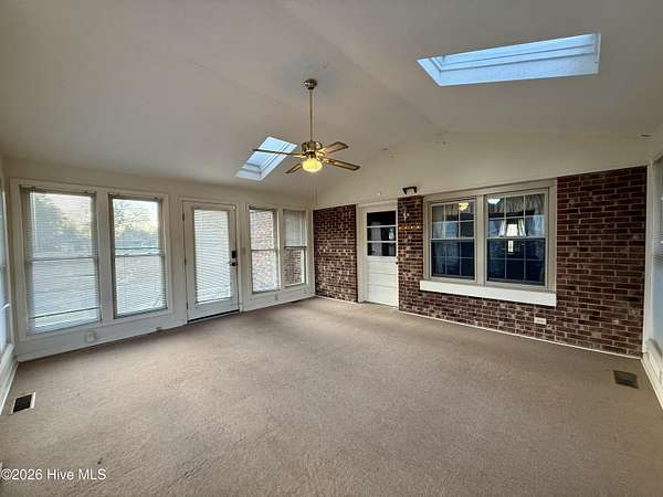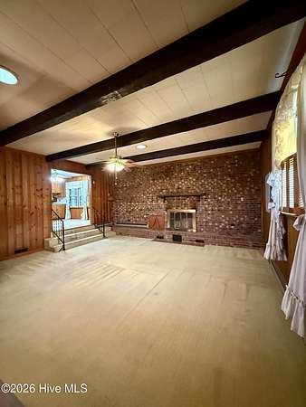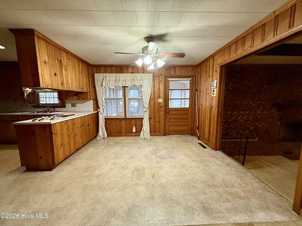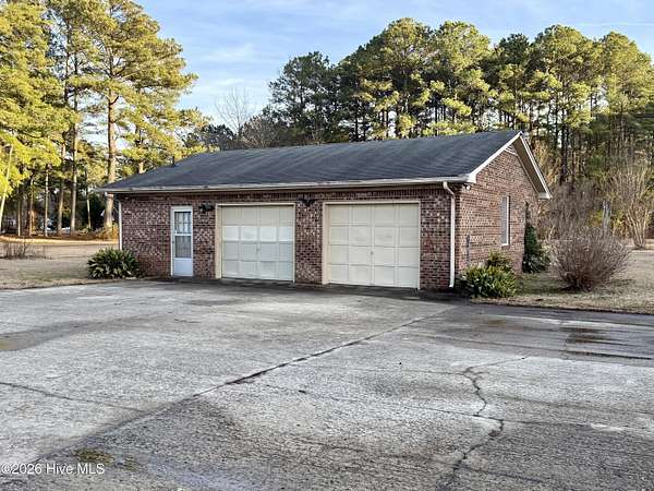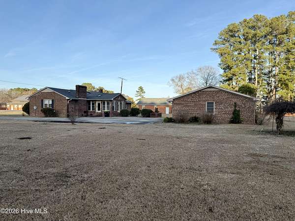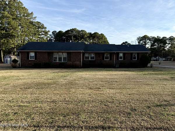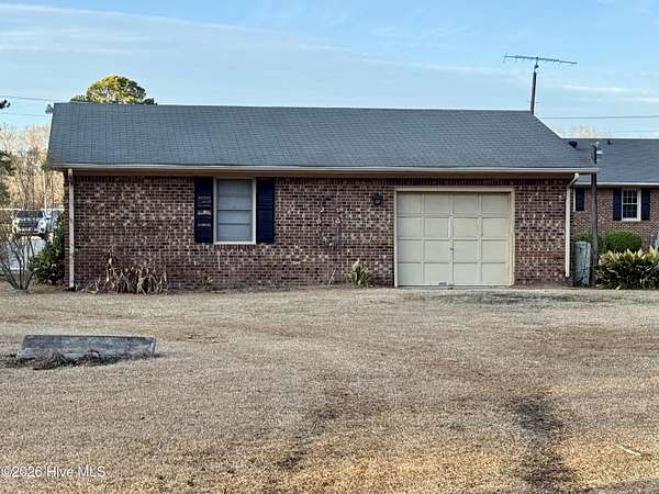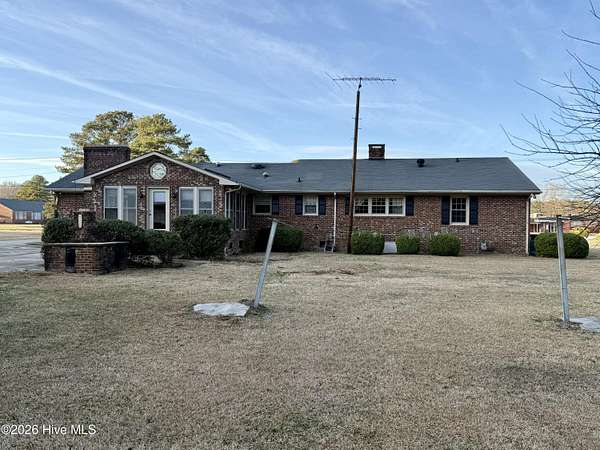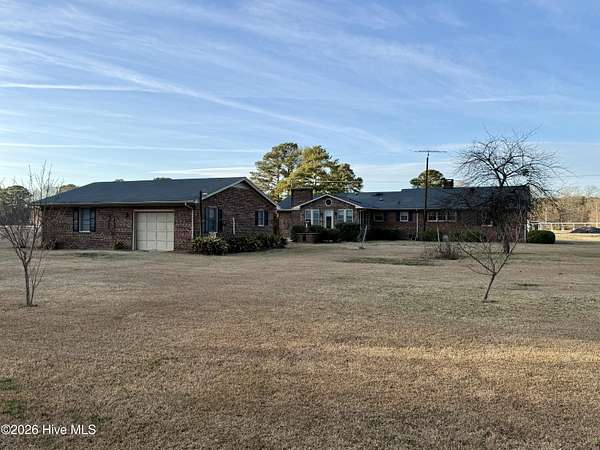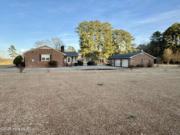Discover the charm of small-town living in Robersonville, NC, where this inviting 3-bedroom, 2.5-bathroom brick ranch sits proudly on a spacious corner setting just outside of town. Offering four combined lots totaling over 2 acres, this property provides room to relax, entertain, and enjoy the outdoors. Step inside to find comfortable living spaces designed for both everyday living and hosting guests. A bright rear sunroom invites you to unwind with morning coffee or evening sunsets, while the large bonus/recreation room creates the perfect gathering space, complete with a natural gas log fireplace, bar, and convenient half bath. The kitchen is well-equipped with all the necessary appliances and flows seamlessly into a formal dining room ideal for holidays and special occasions. A cozy breakfast nook offers a casual space for quick meals, and a built-in office/library area provides the perfect spot for work or reading. Each bedroom features soft carpeting and ceiling fans for added comfort. One full bathroom has been recently updated with a beautiful step-in shower, while the second full bath showcases classic original tile with a traditional tub/shower combination. Outside, the expansive yard offers endless possibilities for recreation, gardening, or gatherings, enhanced by established grapevines, blackberry bushes, apple trees, peach trees, and a fig tree. A cement driveway leads to the detached two-car drive-through garage, which includes an additional half bath and laundry area for added functionality. Conveniently located just 25 minutes from Greenville and connected to city water and sewer, this unique property blends space, character, and practicality. Come experience all the possibilities this Robersonville home has to offer.