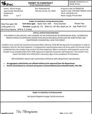 Est $723/mo1+ acres cleared, graded and ready for new construction, single family Modular, Stick built or Barndo.. Seller will record deed restriction stating only one primary residence and no mobile homes. Conventional septic tank permit in Hand, Underground electrical power on site. Turn key, no site work cost needed, sandy high soils in a beautiful , clean, quiet area close to Moncks Corner, National Forrest and 36 min to Mount Pleasant. Lot Borders Beautiful Custom home neighbor to the north . Privacy at its best! Close to Public boat ramp