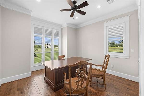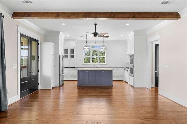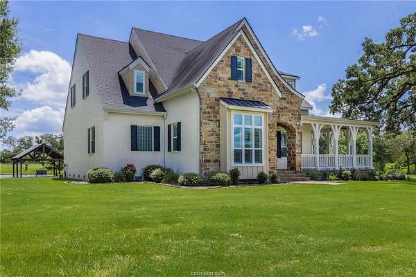 A legacy home designed for generations. Created to honor five decades of Southern Living's architectural tradition, this special edition plan blends elegance, comfort, and heritage. Rooted in traditional Southern design, it's thoughtfully crafted for indoor and outdoor living. Generous porches, pitched rooflines, dormers, and shutters create inviting curb appeal steeped in warmth and charm. Inside, an open concept layout filled with natural light allows everyday living to flow with ease. A chef's kitchen with generous counter space, and a large island anchors the heart of the home, opening to a spacious living room perfect for entertaining or relaxing by the fire. The main floor owner's suite offers privacy and comfort, while flexible bonus spaces suit everything from a home office to family gatherings. Upstairs, two bedrooms, two full baths, and two versatile bonus areas offer a perfect retreat for guests, grandchildren, or hobbies. Craftsmanship shines through with plantation shutters, hardwood floors, custom millwork, and designer finishes rooted in regional heritage. This is more than a floor plan, it's a celebration of legacy, lifestyle, and enduring Southern beauty. The King Oaks subdivision offers a peaceful setting with a 60 acre nature preserve, trails, a stocked fishing pond, park with pavilion, and a community pool with outdoor kitchen and firepit. Just a short drive to College Station, this home blends tranquil country living with city convenience.