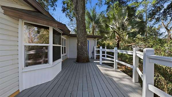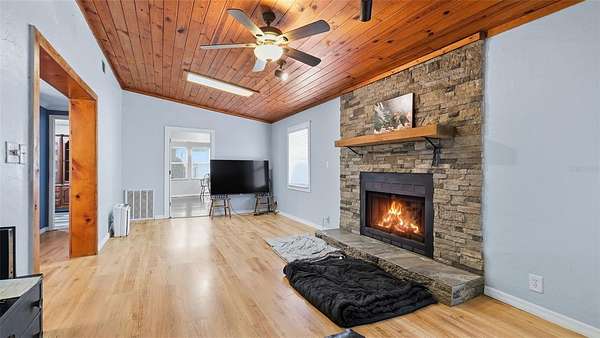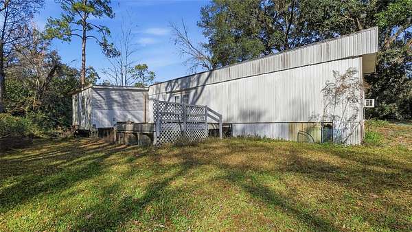 The main residence is a spacious four-bedroom, three-bath home that was originally a single-wide mobile home but has been extensively expanded (2075 SQFT)with permits--so much so that only one original wall remains. While it is still classified as a single-wide by definition, the layout and size feel far larger. Upon entering, you're welcomed into a versatile multifunctional room with access to the porch, ideal for a sitting area, office, or flex space. The kitchen features white cabinetry, tile countertops, stainless steel appliances including a stove, microwave, refrigerator, and dishwasher, and flows into the dining room, which showcases a cozy fireplace. Just beyond the dining area is a bedroom with its own private bath. The living room offers a second fireplace along with a bar setup, making it perfect for entertaining. The spacious primary suite is located at the rear of the home and includes an en suite bath with a garden tub, separate shower, and an oversized vanity. A large additional room on the opposite side of the living room can serve as a bedroom or office and includes its own exterior door. Recent updates include added GFCI outlets, electrical upgrades, and a new water heater 2026,AC 2021, ROOF 2021. SELLERS HAVE HAD A HOME INSPECTION OFFERING BUYER PEACE OF MIND!