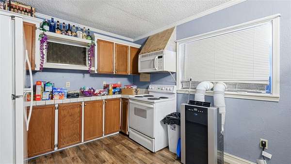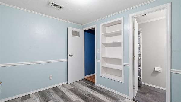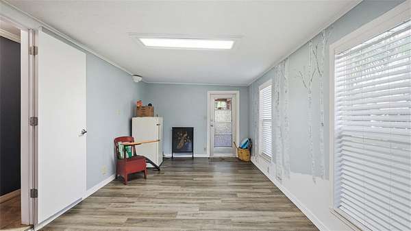 Directly next door on the same acreage is the second home, located at 10539 Bessemer. This fenced-in lot includes a single-wide home with a permitted addition that increases the overall living space. One end of the home offers a bedroom with an en suite bath, while the opposite end includes another room that could serve as a second bedroom with the addition of a closet. This home has it's own septic and well, and will require some work, making it an excellent opportunity for renovation, rental income, or guest accommodations/mother-in-law suite.