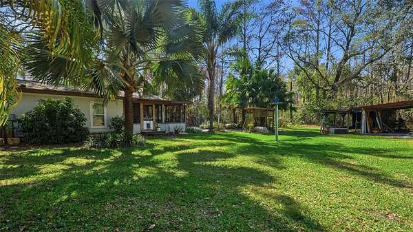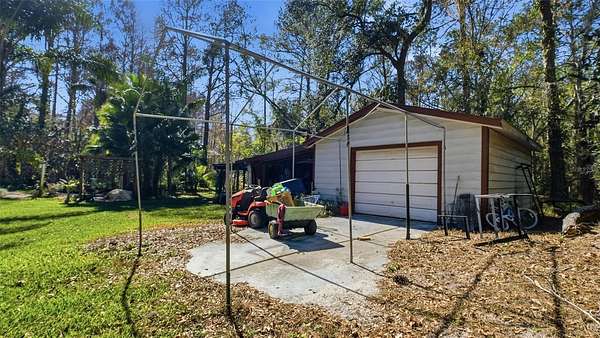 Tucked away on over five peaceful acres, this unique property offers a rare multi-home setup surrounded by beautiful vegetation, mature landscaping, and the quiet charm of country living--where the loudest sound you'll hear is roosters crowing in the distance. The property features two homes, a separate metal garage with a lean-to, two additional small sheds, and one oversized shed, providing exceptional storage, workshop, or hobby space. Most of the yard is fenced, and a tranquil koi fountain adds to the serene outdoor atmosphere.