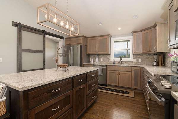 Presenting a turn-key hobby farm opportunity! This 4.1-acre property is fully fenced for horses and features a 27x33 pole barn with an overhead door and walk-through access. The home itself was completely remodeled in 2020, offering modern comfort and style. The 2-bedroom, 2-bathroom layout showcases a stunning custom kitchen and bathroom with soft-close cabinets and elegant granite countertops. Enjoy the bright, open feel of vaulted ceilings and the warmth of hardwood flooring throughout (bathrooms excepted). Relax on the 14x14 deck with seasonal lake views. Another great feature is the Diamond Kote siding. The property includes a full appliance package including washer and dryer and water softener, ample LED lighting, and a lower-level storage room that doubles as a storm shelter. Mechanicals are neatly contained in a separate basement room. Located just 15 minutes from Branson West and 3 miles from Table Rock Lake, this property offers the ideal balance of rural living and convenient access to shopping and recreation.