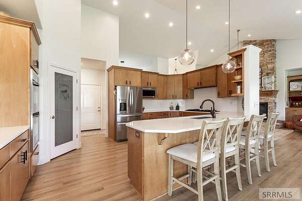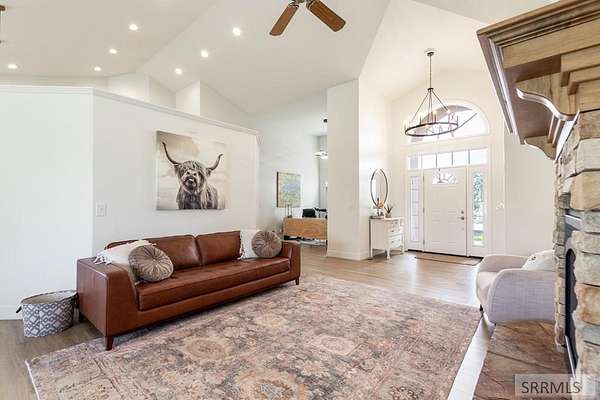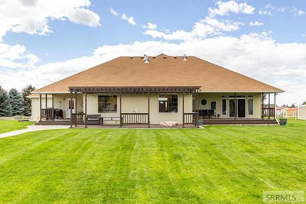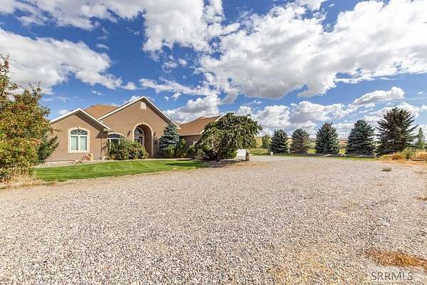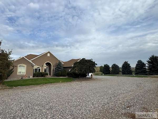 PRICE REDUCTION-ACREAGE-PRIVACY-BARN-BEAUTIFUL SPACIOUS HOME- Looking for peace and tranquility, then step into this beautiful home located in the countryside of Shelley, This AMAZING HORSE/LIVESTOCK property is located on 6.15 acres with two side by side fenced pastures directly down the driveway. This will lead you to this wonderful home as the open concept and cathedral ceiling with surrounding windows will bring you joy and all the views your property offers. This spacious home has four bedrooms, three full bathrooms, massive laundry room/mud room with plenty of storage space and your pets private wash station. The kitchen offers plenty of cooking space with a 4-burner Jennaire gas cooktop with gas grill and dual electric ovens. After a busy day, step downstairs into the large theatre room with built in Atmos speakers for all to enjoy. This home features a master suite with an exterior exit out to your own private section of your own private patio. The backyard features an impressive shop/barn which includes 25x40 size shop and stall space of 25x40 which includes horse stables. Fenced in pastures, a tack shed, 12x15 chicken coop. CALL LISTING AGENT FOR SHOWING APPT AND MORE INFORMATION.