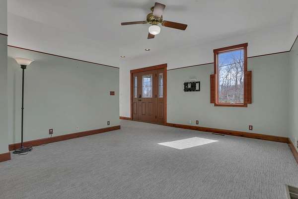 - Carpet, Ceramic/Porcelain, Vinyl, Wood