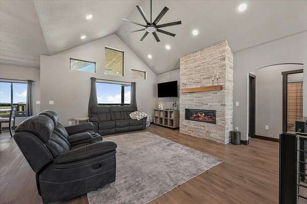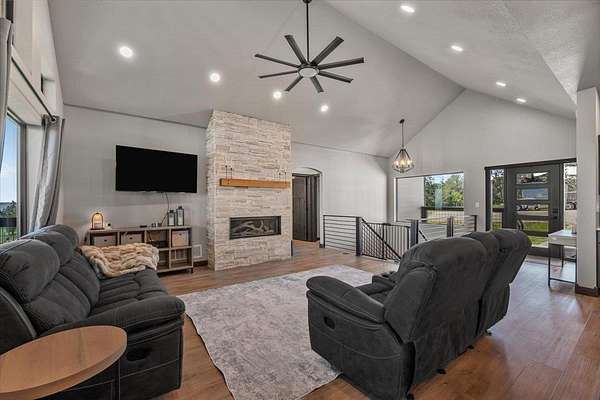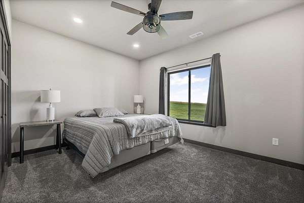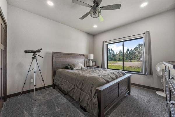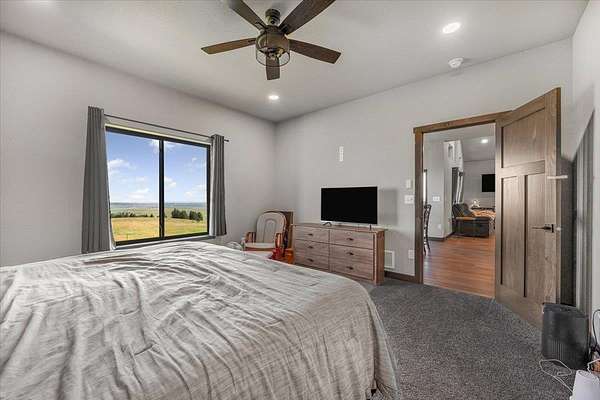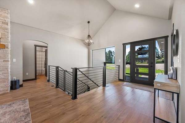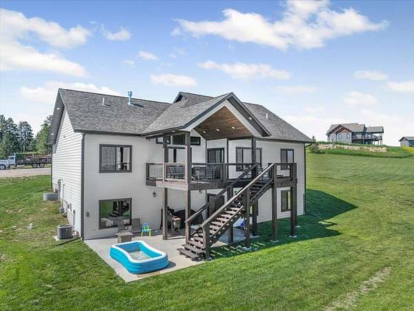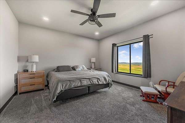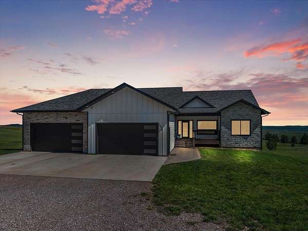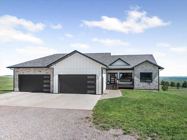 For more information, please contact listing agent Michael Warwick 605-641-2569 with Great Peaks Realty. This stunning 6-bedroom custom-built spacious home rests on 2-acres of scenic beauty conveniently located along the outskirts of Spearfish in Cedar Berry Canyon Estates! Just imagine the sunrises and sunsets you will capture while relaxing on the covered back deck! Gorgeous interior finishes include custom handrail, Cambria countertops, large kitchen island, walk-in pantry, large windows throughout inviting in the natural light, two gas log fireplaces, tankless water heater and reverse osmosis system. Primary ensuite on the main level features a spacious bath with soaker tub and tile walk-in shower with dual shower heads, large walk-in closet with convenient pass-through access to the laundry room/mudroom that is equipped with built-in lockers! Also, on the main level 2 additional bedrooms and bathroom provide perfect functionality for this spacious home. The walkout basement provide endless room for a game area, workout space, plus the large family room offering a wet bar and another gas fireplace for cozy movie nights, 3 large bedrooms and bathroom complete the home. Walkout to the covered backyard patio. You will love the huge 4-car garage. This classy home is a must-see!