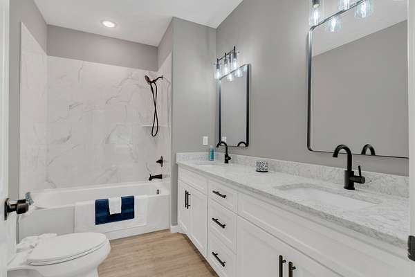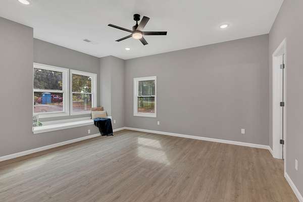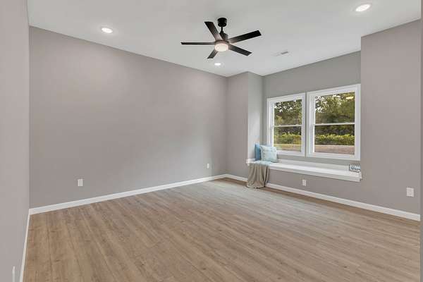 Step inside to discover luxury vinyl plank flooring flowing throughout, custom-built soft-close cabinetry, and premium stainless-steel appliances that elevate the kitchen's appeal. The primary suite is a true retreat, featuring a spa-inspired bathroom with a soaking tub, a spacious walk-in closet, and a built-in window seat perfect for relaxation.