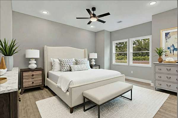 Enjoy cozy reading nooks in both the primary and secondary bedroom, each designed with comfort and charm in mind. A mudroom and pantry conveniently located off the 2-car garage add function to this elegant layout.