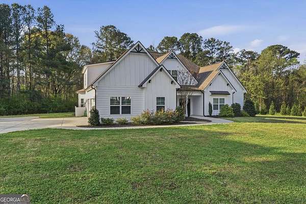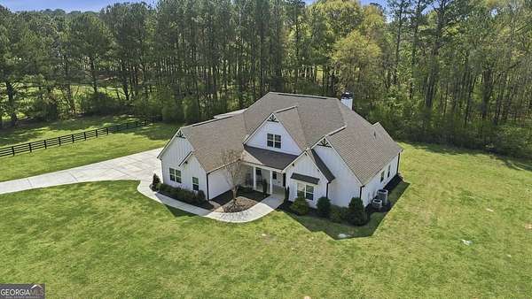 This 5-acre estate in Lawshe Farms offers the perfect blend of modern luxury and serene country living. The 2020-built home is a masterpiece of design, featuring the highly customized "Greywell" plan that has been meticulously upgraded throughout. At the heart of the residence is a chef-inspired kitchen that serves as an entertainer's dream, complete with raised double islands, a hidden walk-in pantry, and a suite of premium stainless steel appliances including double ovens and a gas cooktop. The main level is thoughtfully laid out with gorgeous hardwood floors, a vaulted family room anchored by a shiplap fireplace with floating shelves, and a large formal dining room ideal for family gatherings. Retreat to the luxurious owner's suite on the main floor, which is accompanied by a convenient additional guest room. Upstairs, the home continues to impress with three spacious bedrooms featuring oversized closets and a versatile loft area perfect for a home office or study. Outdoor living is equally impressive, with an extended 12-foot covered porch and a custom wood-burning fireplace overlooking the expansive, private acreage. With five bedrooms, four baths, and high-end finishes at every turn, this property is a rare find that combines space, style, and comfort.