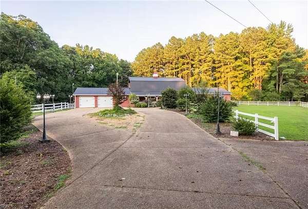 Tucked away on over 12 acres, this custom-built 3,128 sq-ft property delivers a setting that is hard to find. An impressive pond and bridge greet you on arrival, creating a striking entrance for a property designed to be experienced. The interior is highlighted by an oversized primary suite that serves as a true retreat, a gourmet kitchen with custom cabinetry, and a welcoming living room that leads to a spacious entertainment space. An attached garage adds everyday convenience and functionality. Step outside to explore wooded trails ideal for walking or riding, offering a private outdoor escape right in your backyard. Located in Skippers, VA, the property is minutes from Emporia and I-95, providing convenient travel to Roanoke Rapids, Norfolk, Richmond, Durham, and Raleigh. This one-of-a-kind property offers the flexibility to serve as a private residence, event venue, or short-term rental escape. Schedule your private tour today!