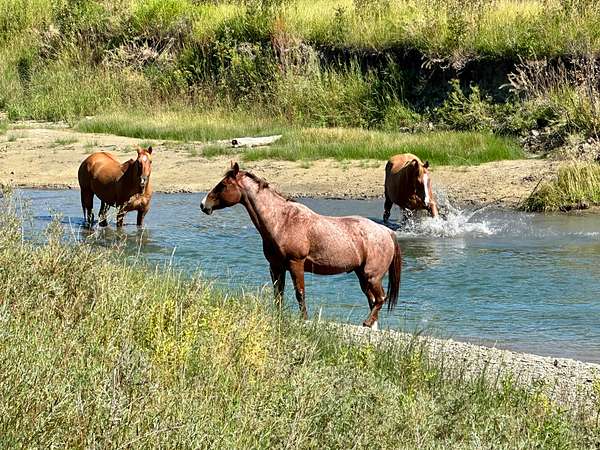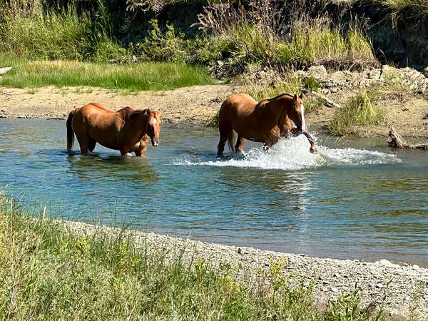 Sweet Grass Overlook boasts approximately 2,200+- feet--nearly half a mile--of Sweet Grass Creek flowing through both sides of the ranch. The creek offers year-round flow and supports wild trout, creating a rare on-property fishing opportunity. The ranch also shares a half-mile border with 320+- acres of BLM land, expanding the recreational footprint and preserving open space.