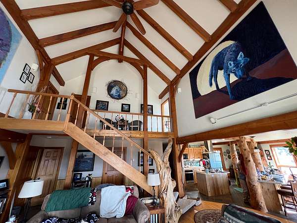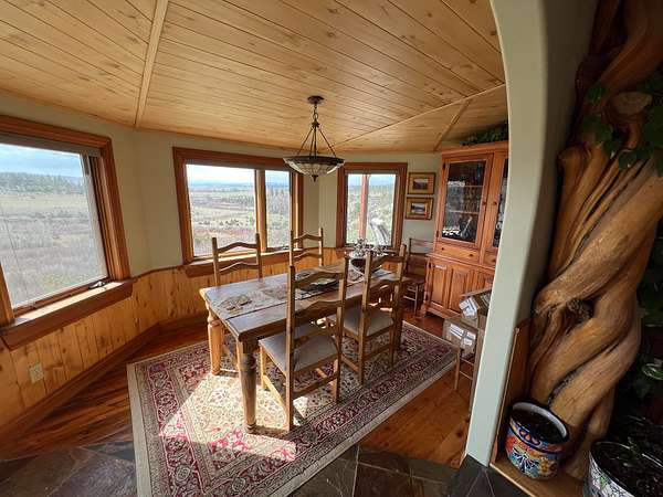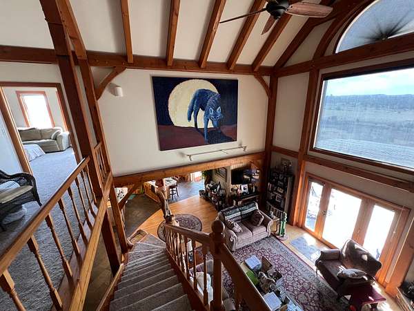 Anchoring the property is a 4,895+- square foot main residence, thoughtfully constructed in 1995 with timber frame accents. The home includes three spacious bedrooms and three bathrooms and sits in a position that takes full advantage of the sweeping views across the Sweet Grass Creek valley and southward to the iconic Absaroka Beartooth Mountains. A detached garage and a horse-ready pole barn with corrals make this property well-suited for equestrian pursuits or simply enjoying the vast Montana landscape.