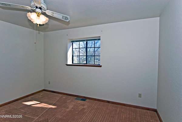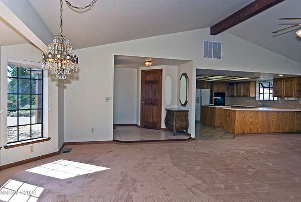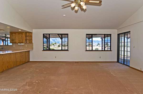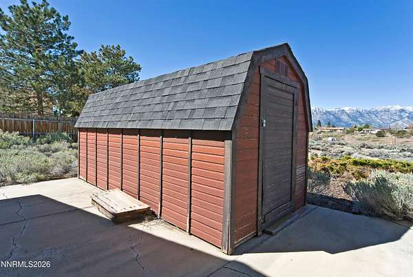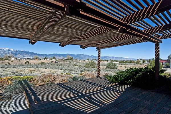 This 3-bedroom, 2-bath home offers 1,855 square feet of living space set on 1.53 acres of usable land, surrounded by beautiful mountain views and wide-open skies. Located in a peaceful Gardnerville setting with close proximity to BLM land, this property is ideal for those who enjoy outdoor recreation with room to spread out. Inside, the home features an open floor plan with a spacious kitchen that includes a breakfast bar, ample cabinetry and pantry, flowing comfortably into the main living area. The living room is highlighted by a rock hearth wood-burning fireplace that adds warmth and character to the space. The primary suite offers a large bedroom with a soaking tub, separate stall shower, and walk-in closet. A slider leads from the primary bedroom and living room out to the deck, which has a pergola cover, creating a great spot to relax and take in the surrounding views. The large parcel is suitable for horse keeping, additional outbuildings, gardening or any other personalized use. With its combination of land, views, and location near endless outdoor access, this property presents an excellent opportunity to create your ideal home with a little vision and TLC. Schedule your showing today to see the potential firsthand.