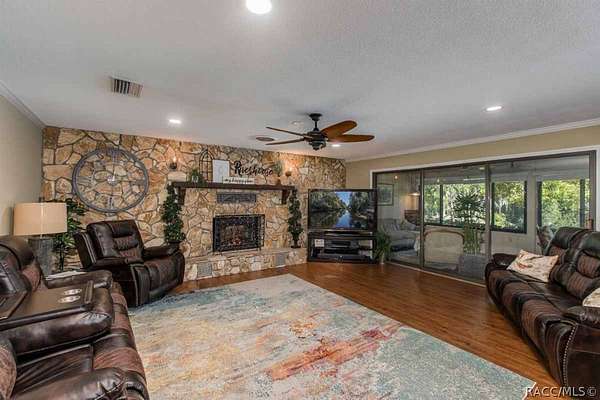 Riverfront Retreat with Gulf Access - Your Dream Home Awaits!** Owner is a licensed real estate agent in the state of Florida. Escape to your serene and peaceful 1.6-Acre Riverfront Oasis in the heart of Crystal River, FL. This stunning home sits on 271 feet of the Withlacoochee River and offers the perfect blend of relaxation and adventure. Enjoy your days in the screen-enclosed heated pool, cozy up by the stone fireplace, or set out from your boat dock for direct deep-water access to the Gulf of Mexico-great for scalloping, saltwater fishing, and more! Prefer freshwater fishing? Lake Rousseau's public boat ramp is just 5 minutes away. This spacious 3,620 sq. ft. home is designed for comfort and entertainment. The updated kitchen features a breakfast nook, coffee bar, and passthrough to the Great Room, where your family will love gathering for meals, movie nights, or fireside chats. The Great Room opens to a sunroom with breathtaking views of the riverfront, leading to a screened gazebo right over the dock. The primary suite is a serene retreat with a walk-in closet, ensuite bath, and a cozy sitting room with sliding doors to the pool. Two additional large bedrooms share a beautifully appointed guest bath. The oversized garage has been thoughtfully converted into additional living space, complete with a mini-split system for heating and cooling and is included in the total square footage. Here, you'll find a home gym that could easily be a 4th bedroom, a large laundry room with an extra refrigerator, along with a utility closet and storage room great for holiday decorations and more. Prefer the garage? The conversion can be reversed to suit your needs. Additional features include an electric security gate, paved driveway, canoe/kayak launch, and mature oak and cypress trees dotting the fully fenced landscape. Don't miss this rare opportunity to own a slice of paradise. Schedule your personal showing today and make this incredible riverfront home yours!