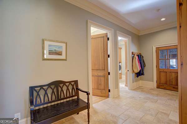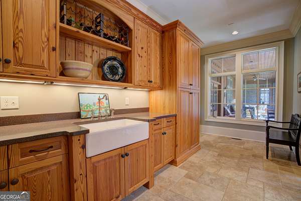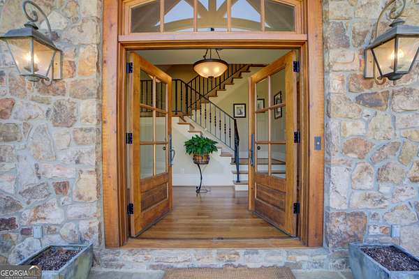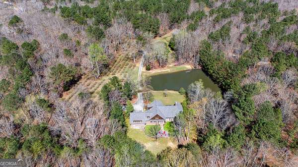 Set against the quiet, rolling landscape of Rome, this extraordinary 42-acre estate at 1059 Radio Springs Road is a rare expression of refined Southern living-where craftsmanship, privacy, and natural beauty converge. A winding drive reveals a striking lodge-inspired residence, gracefully positioned beside tranquil water frontage and framed by mature hardwoods. The home's architectural presence is both timeless and commanding, with hand-laid stonework, rich timber accents, and an inviting front porch that sets the tone for what lies within. Inside, a soaring great room unfolds beneath vaulted, wood-beamed ceilings, anchored by a dramatic floor-to-ceiling stone fireplace and bathed in natural light from expansive windows that bring the outdoors in. The interiors strike a harmonious balance between rustic elegance and modern comfort, with wide-plank hardwood floors, custom millwork, and thoughtfully curated finishes throughout. The heart of the home is a chef's kitchen of exceptional quality-appointed with bespoke cabinetry, professional-grade appliances, a substantial center island, and warm stone surfaces-flowing seamlessly into an intimate dining space designed for both everyday living and elevated entertaining. Comprising 4 bedrooms, 2.5 baths, and a spacious bonus room, the residence offers both flexibility and comfort. The private primary suite is a serene retreat, featuring peaceful woodland views and a spa-inspired bath with a soaking tub, glass-enclosed shower, and refined detailing. Additional bedrooms and living spaces are thoughtfully designed to accommodate family and guests with ease. Outdoors, the estate unfolds as a sanctuary. A screened porch invites year-round enjoyment, overlooking manicured grounds and the gentle curve of the water's edge. Once a flourishing blueberry farm, the property still features rows upon rows of established blueberry bushes, offering both a charming legacy and unique agricultural potential. Open pasture, wooded acreage, and fertile land create endless possibilities-from recreation to hobby farming or equestrian pursuits-while preserving complete privacy. This is more than a home; it is a lifestyle defined by space, heritage, and understated luxury-just moments from the charm and culture of Rome, yet worlds away. Nestled near the center of the ABC triangle (Atlanta 1 hr, Birmingham 2 hrs, Chattanooga 1 hr) , 11 mins to Sam's Club, 15 to Publix, this property is extremely private yet also convenient to all of the modern amenities. 1059 Radio Springs Road | A legacy property of rare distinction.