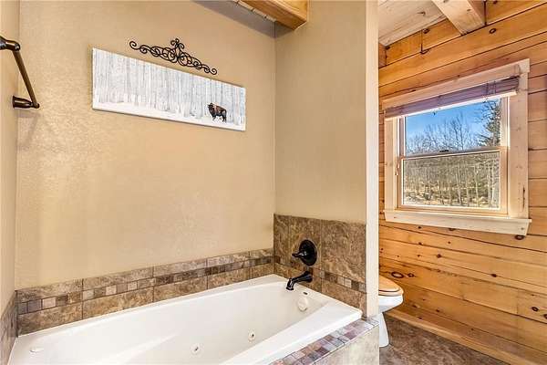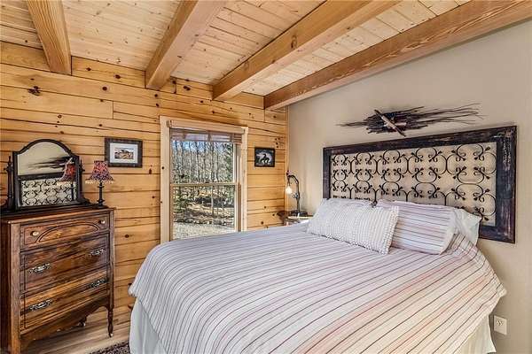 From downtown Fairplay, head north on 285 for 4.5 miles. Turn right onto CR-5. Turn right onto Breakneck Rd into Warm Springs Ranch. There is a gate, make sure you have the code from showing instructions. Turn right onto Sheep Ridge Rd and drive appx 1 mile. Home is on the right, nestled in an aspen grove. House is set back from the road and unable to be seen from the street.