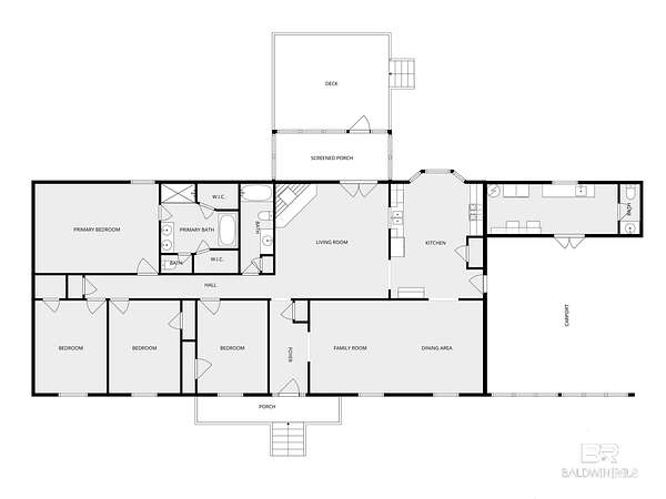 Welcome to this spacious ranch-style home outside of Fairhope, offering both comfort and functionality. Inside, you'll find a formal dining/living combo, a cozy family room with a fireplace, and a large kitchen with custom cabinets designed for storage and style. The home features 4 bedrooms and 2 baths, including a utility room with its own half bath for added convenience and easy access from the open double carport.Enjoy outdoor living on the screened porch or the large back deck overlooking the beautiful yard. This property sits on two lots and includes a 40 x 100 concrete slab with power, water, and sewer already in place--would make a blank slate for a workshop, RV/boat storage, or future projects.Recent upgrades add peace of mind with a Fortified roof (2020), new HVAC and hot water heater (2023), and a whole-house generator (2021). A rare find with space, upgrades, and endless possibilities. Buyer to verify all information during due diligence.