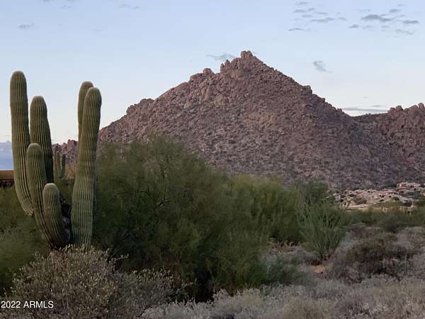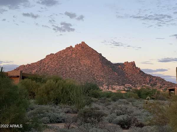 This homesite offers the assurance of less traffic with only 30 homesites along this stretch of Pinnacle Peak Rd that dead-ends about 600' feet to the east. With the backdrop of the McDowell Mountains, views of Signature ''PINNACLE PEAK'', Troon Mountain and night lights Troon Village, your sense of coming home is a delight and enjoyable. Plus living there, the sunsets turn the mountains into several different colors ending with purple. The setting is one of a kind and gives you the feeling of living in the country but still knowing you're minutes away from the 101, shopping, fine dining, and hospitals. NO HOA, NO FEES.
