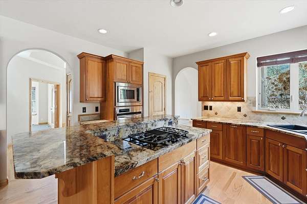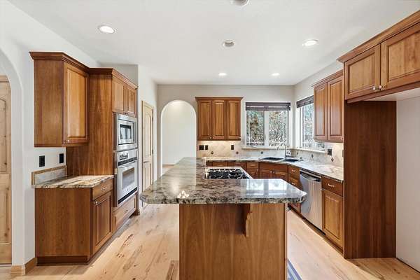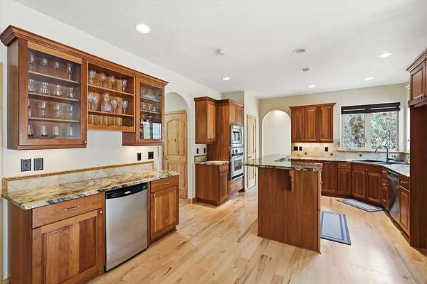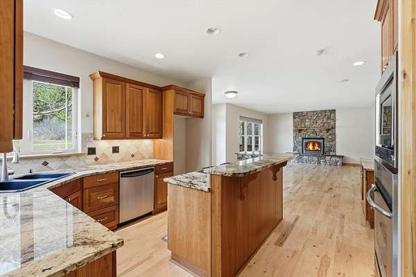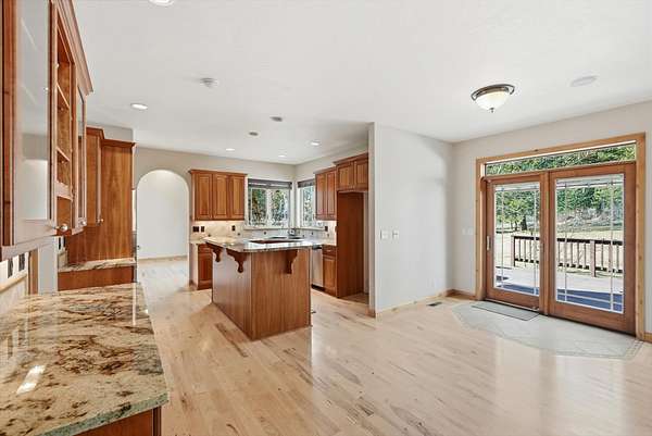 Spacious and versatile property located in the desirable Beyer Meadows just off Hwy 12. The bright main level welcomes you with a vaulted front entry and beautiful hickory hardwood floors that flow through the main floor. Just off the kitchen is a huge family room with a cozy gas fireplace and surround sound, perfect for relaxing or hosting gatherings. A formal dining room, main floor office, half bath, and utility room (with laundry chute) round out the main floor. The kitchen is well-appointed with granite countertops, cherry cabinets, stainless steel appliances (with a new refrigerator coming), a large pantry, and a built-in china hutch complete with a bar fridge-ideal for entertaining. Upstairs you'll find a spacious primary suite featuring walk in closet and french doors leading to the trex deck. The primary bath includes tiled floors, a jetted tub, and double sinks, creating a comfortable retreat at the end of the day. There are 2 additional bedrooms and a full bath plus a large flex space currently being used as a workout area. The unfinished basement offers excellent potential for future living space with two egress windows and plumbing already in place for an additional bathroom. Step outside and enjoy the private deck or relax in the hot tub while taking in the peaceful surroundings. The property also features an impressive shop/garage space with plenty of room for projects, storage, or hobbies. Small heated room for the dog with outside access to kennel. This home offers the perfect blend of comfort, functionality, and flexibility-ideal for everyday living!