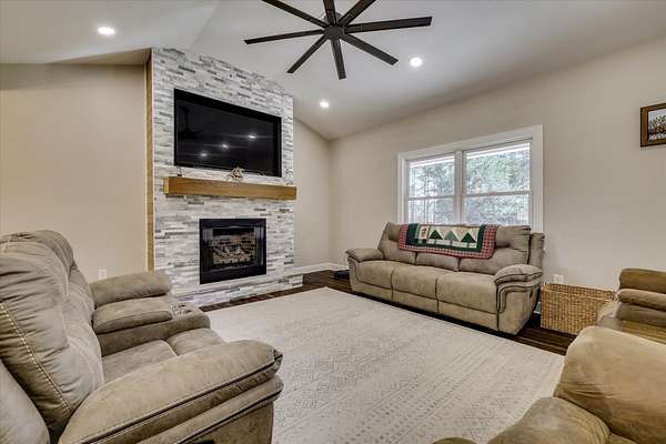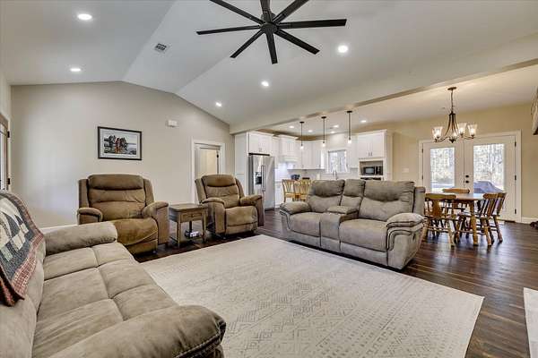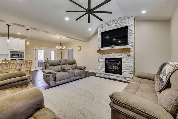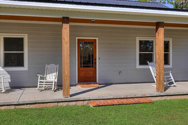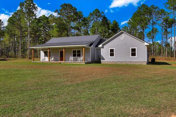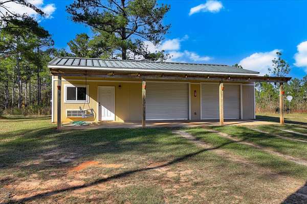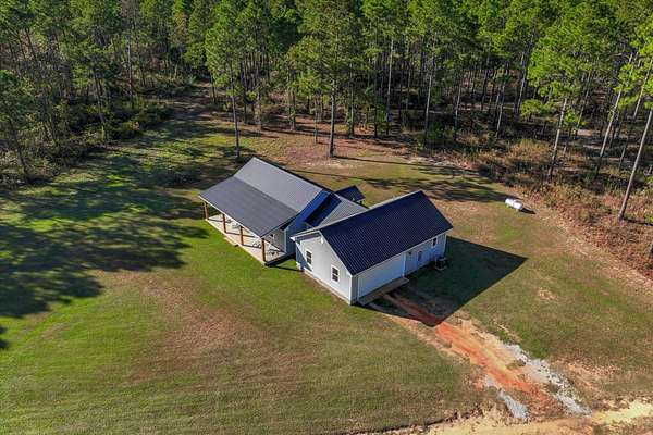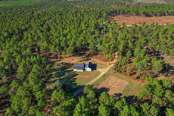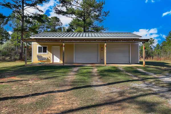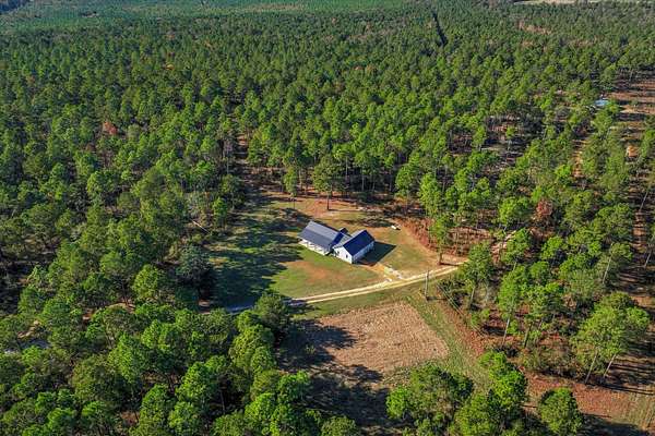 Welcome home to 10596 Sand Valley Road, Avera, GA! This private countryside retreat is an exceptional opportunity to on your own private retreat. Features include 108-acres offering the perfect blend of comfort, functionality, and wide-open space with planted pines. As you enter through the gated entrance, you're greeted by a charming custom-built 1,702 sq ft. 3 bedroom/2 bathroom home featuring a classic rocking chair front porch--ideal for relaxing and enjoying peaceful surroundings. Inside, the open floor plan creates a warm and inviting atmosphere, centered around a stunning stone fireplace that anchors the main living space. The kitchen is designed for both everyday living and entertaining, complete with a large island with bar seating, an eat-in dining area, and abundant cabinet and counter space to meet all your storage and prep needs. The spacious owner's suite offers a private retreat with a beautifully tiled walk-in shower and double vanity. Additional bedrooms are generously sized and feature a tiled tub/shower combination, perfect for family or guests. A well-appointed laundry room includes built-in storage cabinets and extended counter space, making organization and daily tasks a breeze. Beyond the home, the property truly shines with a 66x26 shop--ideal for hobbies, equipment, or business use. Attached is a 12x26 temperature-controlled apartment featuring a kitchenette and full bath, providing flexible space for guests, rental income, or a private office. With 108 acres of land, this property offers endless opportunities for recreation, farming, or simply enjoying the beauty and privacy of rural living.