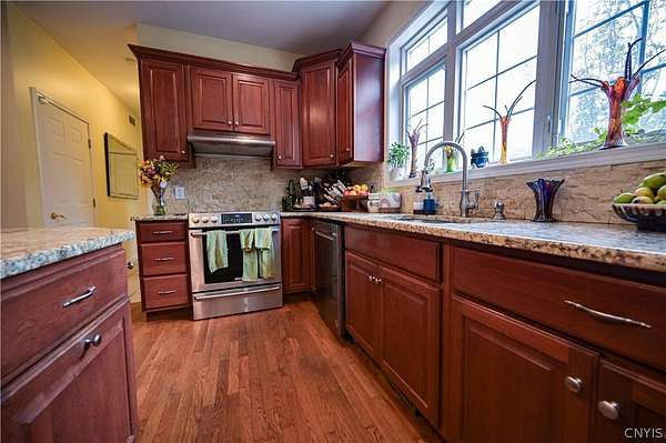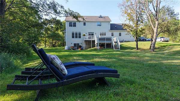 Welcome home to this stunning, executive colonial offering over 3,700 square feet of refined living space in the highly sought-after Deer Run neighborhood. Perfectly situated on 5 plus picturesque acres, this residence combines elegance, comfort, and endless amenities for today's lifestyle. Step inside and you'll find 5 spacious bedrooms and 4 bathrooms, providing room for everyone. The heart of the home features a chef-inspired kitchen with stainless appliances and granite countertops. With an abundance of cabinetry space, this kitchen makes everyday meal preparations or large gatherings a breeze. The kitchen flows seamlessly into formal and casual living areas along with the dining room, ideal for both entertaining and everyday living. Upstairs, the luxurious primary invites you to relax and unwind under the cathedral ceilings, complete with a spacious walk-in closet and a spa-like bath. Three additional bedrooms and a full bath offer flexibility for family and guests alike. Downstairs, take advantage of the versatility that the fully finished basement with walk-out can provide you. Enjoy the luxury of the game room, home gym, and multiple gathering spaces designed for relaxation and fun. Each room is filled with natural light and designed with attention to detail, offering both style and function. Step outside to your private retreat - over 5 acres of manicured grounds and wooded beauty, perfect for outdoor enjoyment, gatherings, or quiet evenings surrounded by nature. Located within the award-winning Whitesboro School District, this home offers the rare combination of privacy, luxury, and convenience in one of the area's most exclusive neighborhoods. Don't miss the opportunity to make this extraordinary property your forever, home.