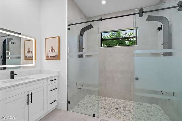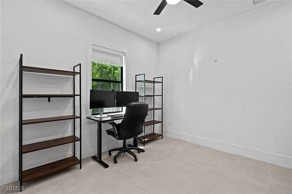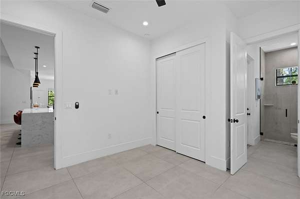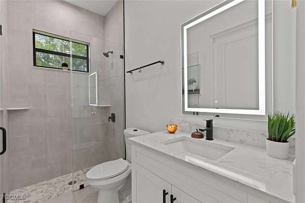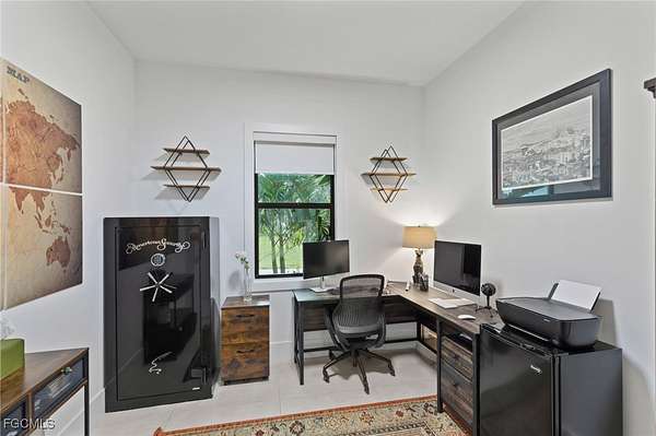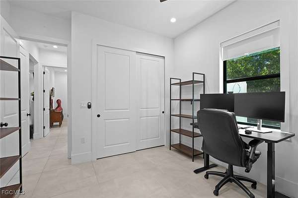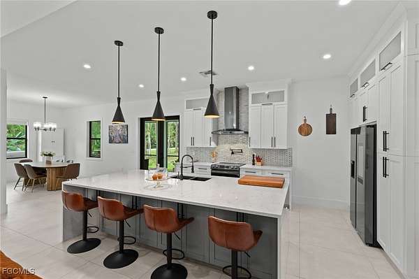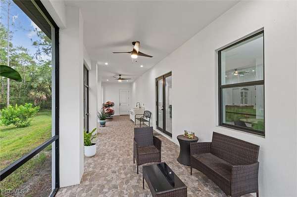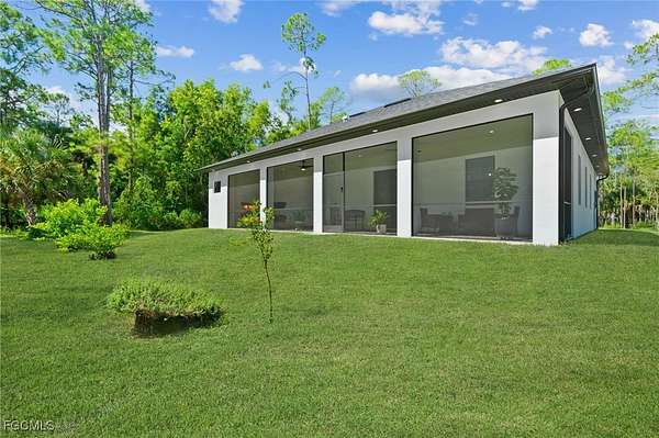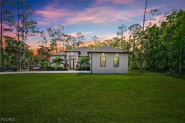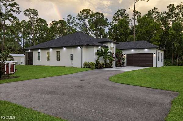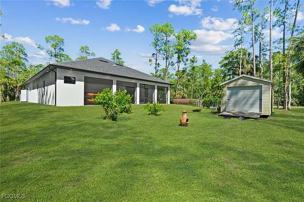 2022 New Construction Luxury on 2.81 Acres in Golden Gate Estates, Naples, FL This is a rare opportunity to acquire a modern, new construction estate offering the ultimate blend of luxury, space, and freedom in the highly desirable Golden Gate Estates. Built in 2022, this exceptional residence features 4 Bedrooms plus a Den, 3 Full Bathrooms, and 2,431 square feet of thoughtfully designed, air-conditioned living space on an expansive 2.81-acre lot with absolutely NO HOA or CDD FEES. The home showcases premium finishes engineered for the Naples lifestyle. Sunlight streams across the open-concept layout, highlighting the soaring ceilings and continuous 32x32 Italian porcelain tile flooring. The chef's kitchen is a true showpiece, defined by a dramatic quartz waterfall island, custom cabinetry, and sleek black stainless steel appliances. The space flows seamlessly into the great room, which features a modern electric fireplace, perfect for elegant entertaining or relaxing. The private primary suite serves as a true sanctuary, complete with a spa-inspired bathroom that includes dual quartz vanities and a spacious walk-in shower. Flexibility is key: one secondary bedroom offers a dedicated full bathroom and direct access to the extended lanai, making it ideal for a future pool bath, private guest quarters, or a multi-generational setup. The versatile den provides excellent space for a dedicated home office or library. Built for comfort and durability, the home includes Impact-Resistant Windows and Doors and an asphalt-paved driveway. Outdoors, the nearly three acres are ready for your vision, featuring mature fruit trees, a chicken coop, and a large shed. With unrestricted acreage, there is ample room to install a custom pool, build a detached guest house, a large workshop, or a hobby farm, as the property is zoned for horses. This estate combines peaceful, rural privacy with metropolitan convenience, located near top-rated private schools, universities, world-class Naples beaches, dining, and the Southwest Florida International Airport (RSW). Experience the ultimate acreage lifestyle in Naples. Schedule your private tour today.