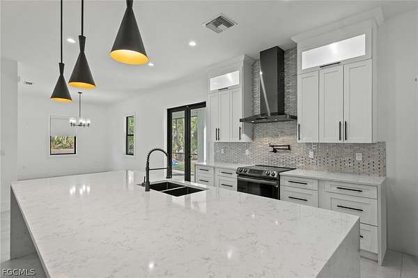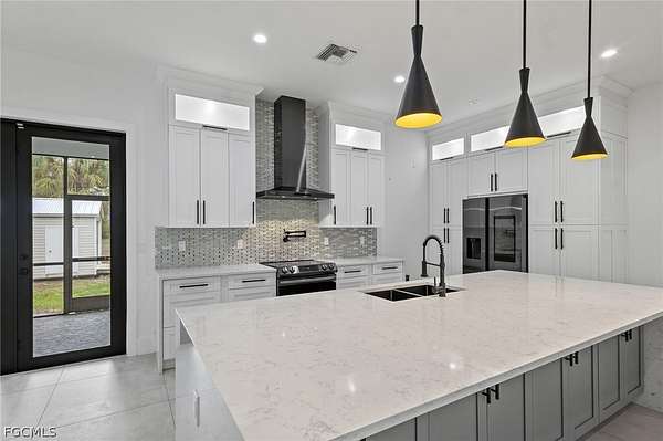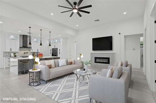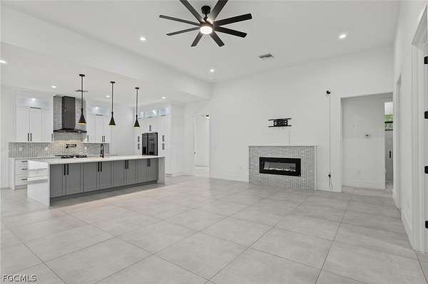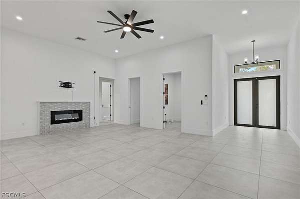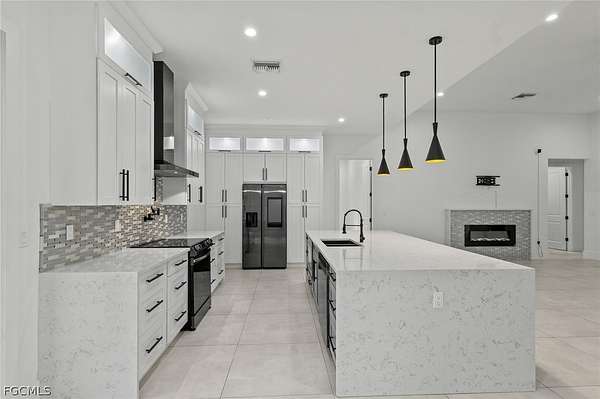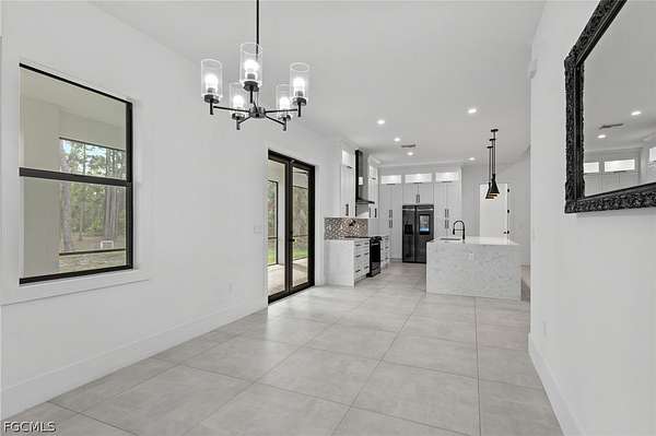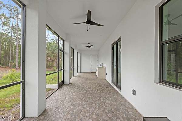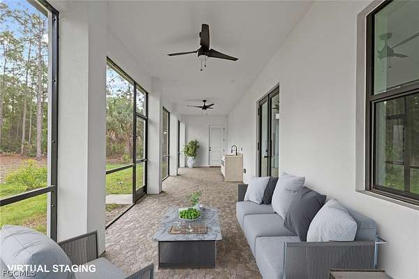 2022 New Construction Luxury Estate on 2.81 Acres in Golden Gate Estates: Resilience Meets Unrestricted Acreage. Exceptional modern estate, ideally situated on a private, dead-end street, is immediately defined by its superior construction and design, offering the ultimate blend of luxury, space, and freedom. The home impresses with soaring high ceilings and a bright, open-concept design, all secured by full hurricane Impact-Resistant Windows and Doors for peace of mind. Oversize Italian porcelain tile flooring flows continuously throughout the entire home's 2,431 square feet of thoughtfully designed living space. The chef's kitchen is a true showpiece of high-end finishes and thoughtful design. It showcases a dramatic quartz waterfall island, sleek black Smart appliances, a hidden microwave, and wall-to-ceiling custom cabinetry that maximizes storage. Details include two separate pantries, an elegant Italian glass backsplash, and a convenient pot filler over the stove. The space flows to the great room, featuring a modern electric fireplace that radiates heat for those cold days in Florida. The private primary suite offers a spa-inspired sanctuary. Flexibility is key: the versatile junior suite features a dedicated full bathroom and direct access to the extended lanai, perfectly serving as a pool bathroom. The home also includes a versatile den, ideal for a dedicated home office or Library. Outdoors, the nearly 2.81-acre parcel is an exceptional feature, ready for your vision. It currently features mature fruit trees, a chicken coop, and a large shed. With unrestricted acreage and absolutely NO HOA or CDD FEES, there is ample space to install a custom pool, build a detached guest house, a large workshop, or develop a hobby farm, as the property is zoned for horses. This estate combines peaceful, rural privacy with metropolitan convenience, located near top-rated private schools such as Community School of Naples, First Baptist Academy, The Village School of Naples, and Royal Palm Academy. It is also close to universities like Ave Maria University, Golf Courses and points of interest like the Naples Botanical Garden and Naples Zoo. Enjoy easy access to convenience stores, a variety of popular restaurants, world-class Naples beaches, dining along Fifth Avenue South and at Mercato, and the Southwest Florida International Airport (RSW). Experience the ultimate acreage lifestyle in Naples. Schedule your private tour today.