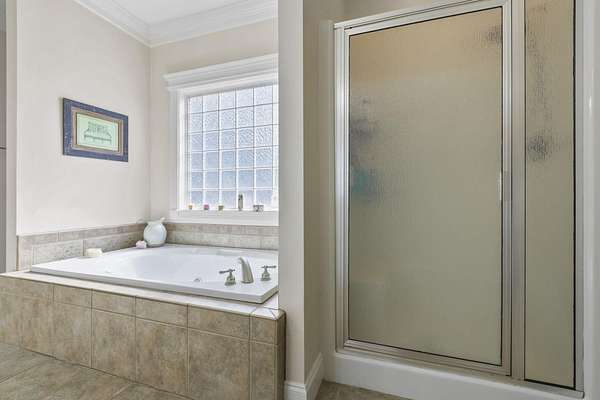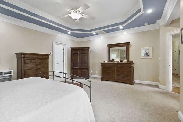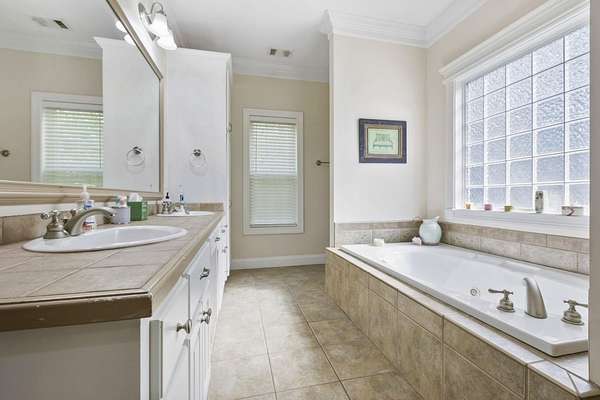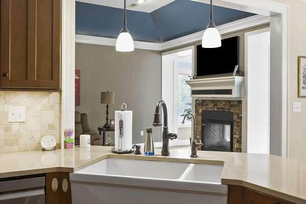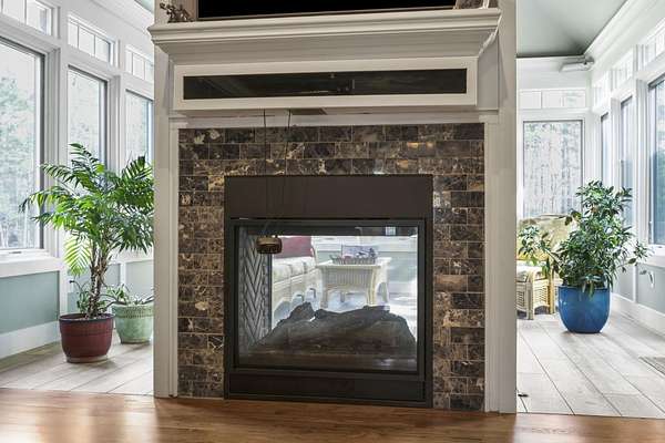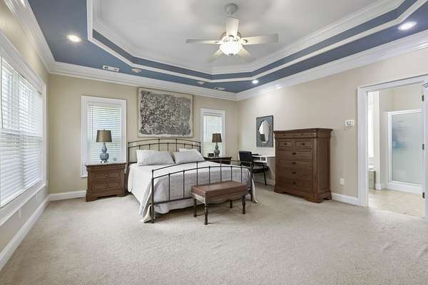 - Ceiling Fan, Ceilings-Cathedral/Raised, Ceilings-Smooth, Countertops-Solid Surface, Fireplace, Garden Tub, Smoke Detector, Split Bedroom Plan, Walk in Closet, Water Purification