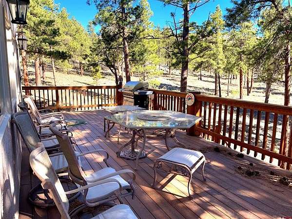 Suzy Woodward, Team Murphy Realty, C: 719-850-5042, suzy@teammurphyrealty.com, www.crenmls.com: Stunning mountain retreat! With its three levels, attached two car garage with a finished basement area and detached two-car garage, this home offers both space and convenience. The finished walk-out basement creates a fantastic separate living area, perfect for guests or extended family. The main floor exudes warmth with its formal living room and the cozy touch of a pass-through log fireplace. The kitchen, equipped with high-end appliances and ample counter space, is a chef's dream. And with two master bedrooms on this level, each with its own luxurious amenities, comfort is clearly a priority. The third floor adds another dimension with its open living area and bonus room, providing additional space for entertainment or relaxation. And let's not forget those expansive Trex decks, offering breathtaking views and the perfect spot for outdoor gatherings. With access to millions of acres of forested public land, this property is a nature lover's paradise. And the private stocked pond adds an extra touch of tranquility. Overall, this home is the ideal blend of luxury, comfort, and natural beauty--a true haven in the Rocky Mountains!