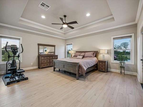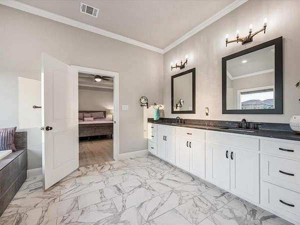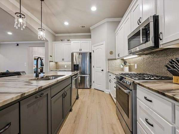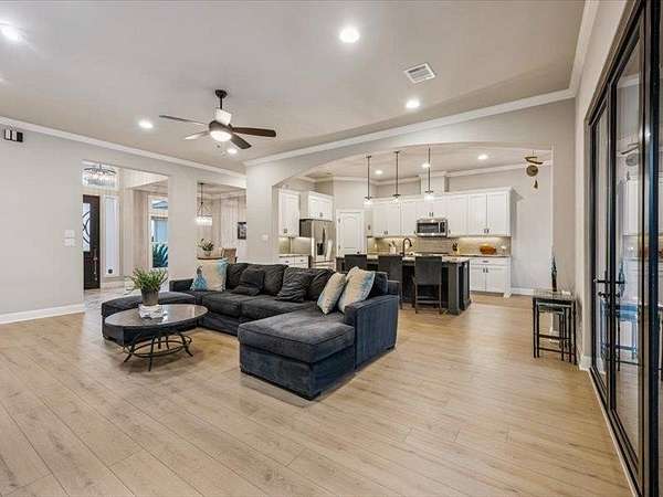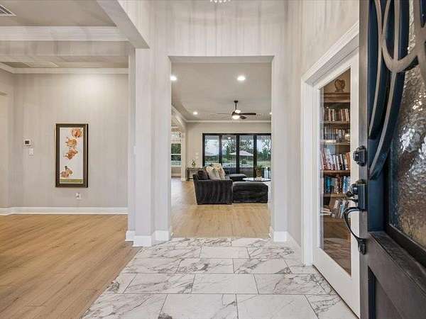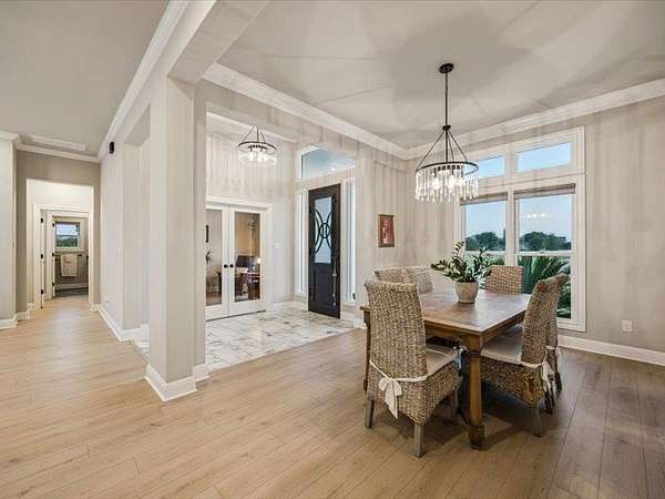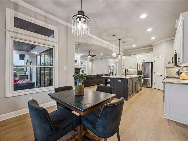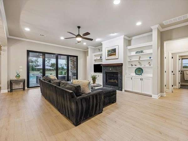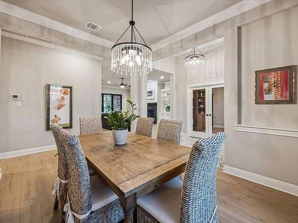 - Bar, Bookcases, Breakfast Bar, Built-In Features, Ceiling Fan(s), Chandelier, Double Vanity, Eat-In Kitchen, Entrance Foyer, Kitchen Island, No Interior Steps, Open Floorplan, Pantry, Primary Bedroom On Main, Recessed Lighting, Stone Counters, Tray Ceiling(s), Walk-In Closet(s)