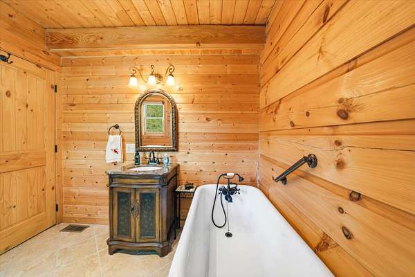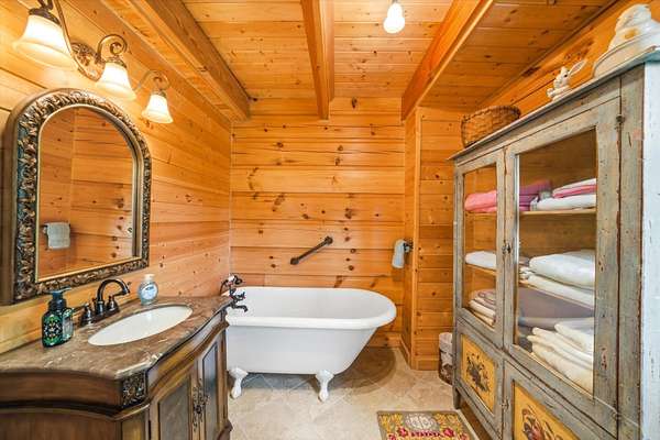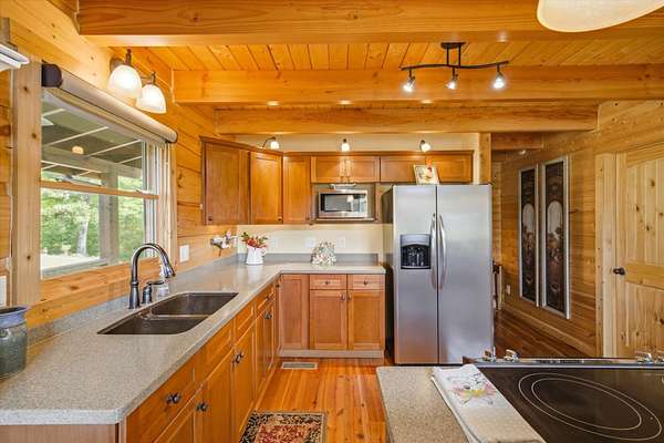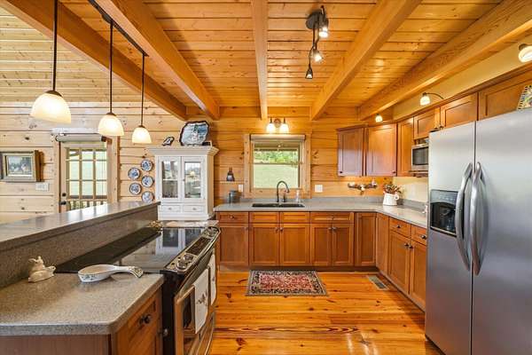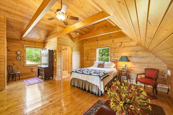 - Cathedral Ceiling(s), Ceiling Fan(s), Granite Counters, High Ceilings, Kitchen Island, Natural Woodwork, Pantry, Primary Downstairs, Soaking Tub, Walk-In Closet(s)