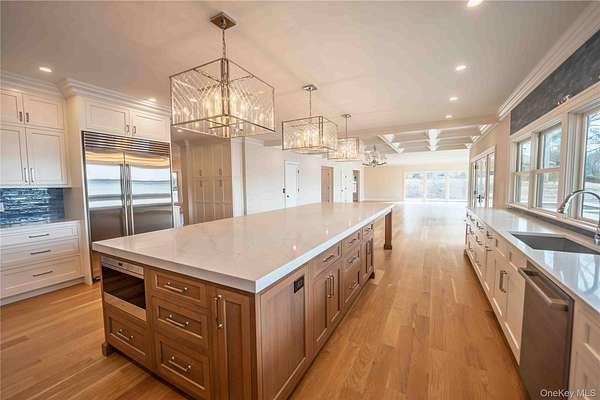 Welcome to 106 Cove Road in the Village of Asharoken. Set on 2 private waterfront acres, this brand-new construction showcases a striking shingle-style Colonial design. This exceptional residence offers almost 8,000 square feet of custom-finished living space, blending timeless architecture with modern luxury in an extraordinary coastal lifestyle. Six ensuite bedrooms showcase this custom home which is thoughtfully designed for both elegant entertaining and everyday comfort. A well-conceived floor plan includes a first-floor bedroom suite, mudroom, two laundry rooms, three car oversized heated garage, and a 3-stop elevator for effortless access to all levels. The heart of the home opens beautifully to the outdoors, with a large patio off the kitchen that wraps around to the in-ground oversized pool (22'x44'), creating the perfect setting for summer entertaining. Truly a chefs kitchen with a sixteen by six foot island, Sub-Zero refrigeration, wolf cooking, walk in storage and full butlers panty. A separate entertaining room with French doors leads to a covered bluestone patio, offering a refined indoor-outdoor experience ideal for year-round gatherings. An oversized dining room that has a built in wine cellar or cigar room. The primary suite is a true retreat, featuring a covered balcony, dedicated makeup area, an oversized five-piece bath, and an extraordinary walk-in closet with two islands, natural light, and a full custom closet system. Located just moments from the charm of Northport Village, this home offers the very best of waterfront living with easy access to beloved restaurants, cultural attractions, parks, marinas, and a vibrant coastal lifestyle. Residence has membership to the EHC - Eaton Harbors Corporation and Northport School District.