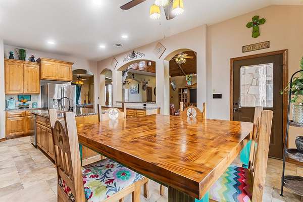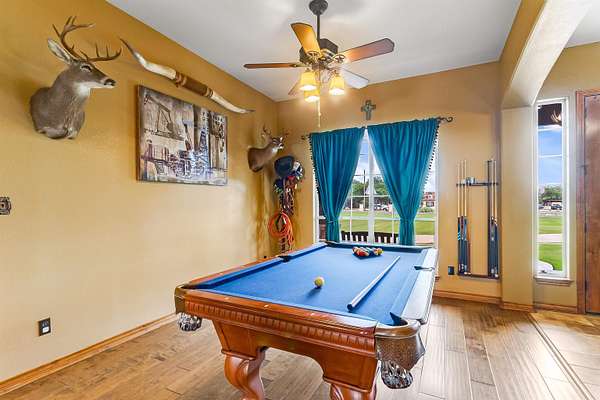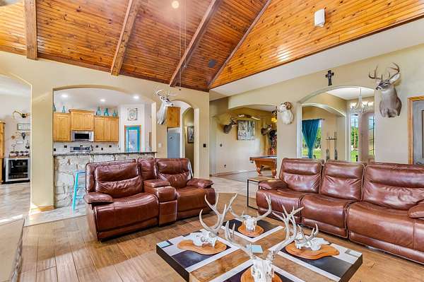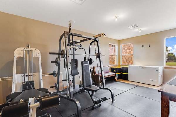 Welcome to 106 Deep Lake Dr in Liberty Hill - a spacious and beautifully designed custom home nestled on 5 acres of peaceful Hill Country land. This property offers the perfect balance of luxury and functionality with 4 bedrooms, 3.5 bathrooms, and a versatile flex room that can serve as a 5th bedroom, home gym, media room, or guest suite. Inside, you'll find a thoughtfully designed layout featuring a formal dining room, private home office, and an open-concept living space ideal for everyday living and entertaining. The kitchen is equipped with modern appliances, ample cabinetry, and a large island overlooking the family room with views of the backyard. Step outside to your private retreat complete with a sparkling pool, hot tub, and tranquil waterfall - perfect for summer gatherings or relaxing evenings under the stars. The backyard offers plenty of space to play or unwind, and the additional barn is ideal for animals, equipment, or extra storage. Additional highlights include a 2-car garage, mature trees, and room to expand. Located in a peaceful area yet close to town, this property offers the freedom of country living with the convenience of nearby amenities. Don't miss this rare opportunity to own a piece of Liberty Hill paradise!