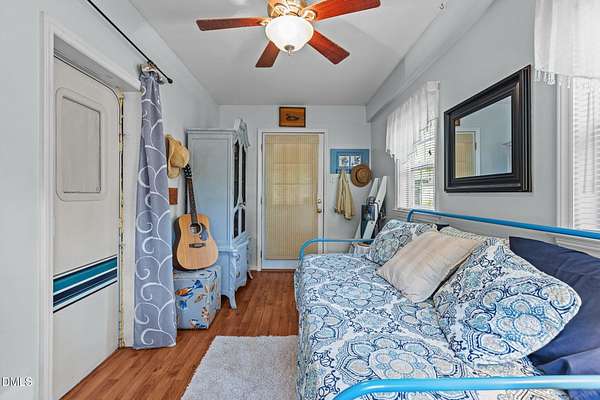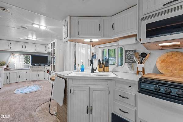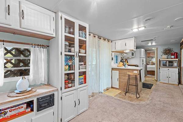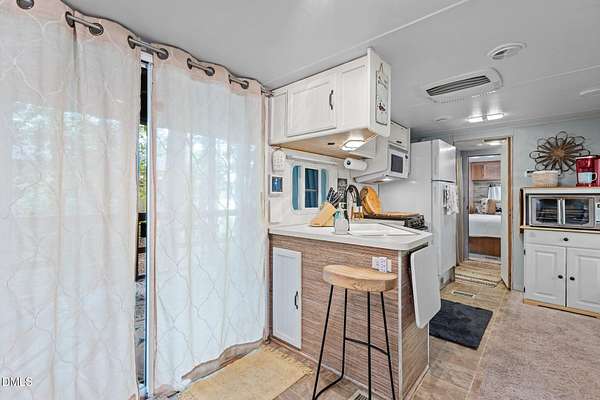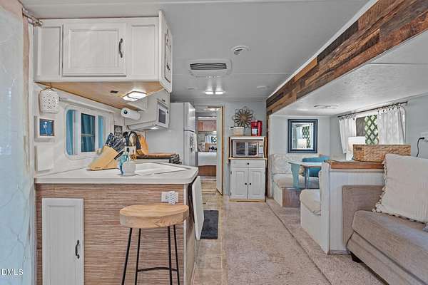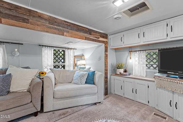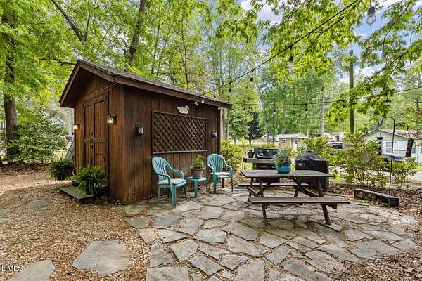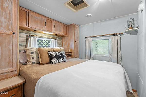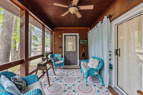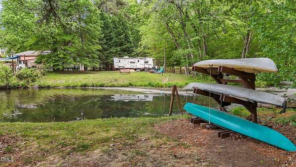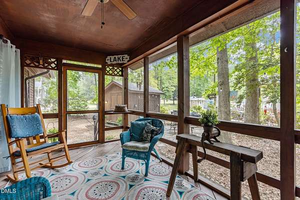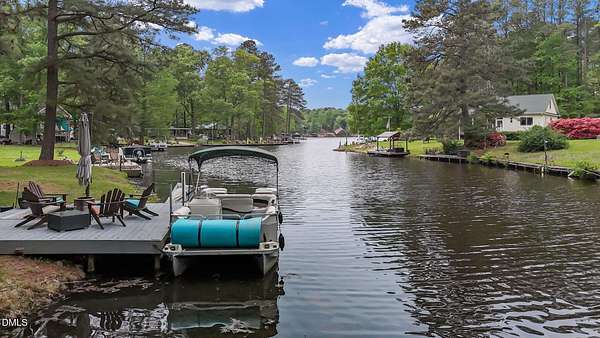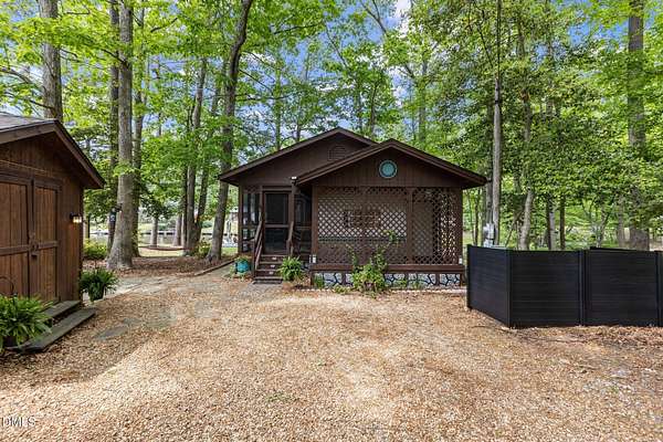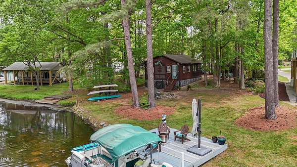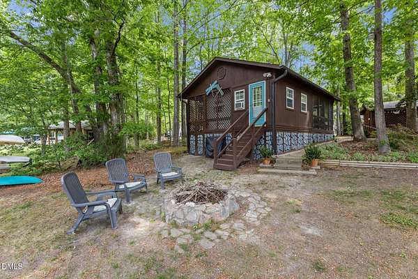 Enjoy lakefront living with this beautifully maintained camper with room addition and screened porch. This waterfront wooded property is located in a quiet cove in the private gated community of Lake Royale and comes with ALL the water toys that you will need to enjoy the lake. Pontoon boat with new motor, jet ski on floating dock, and even the kayaks with a kayak rack are all included!! The 1 bedroom/ 1 bath camper comes furnished with everything you need to start living the lake life indoors and out. The camper features a roof over, a screened porch, and a room addition that can be used as a second bedroom or additional living space. Outside you will find a beautifully landscaped property featuring a flag stone patio with picnic table and grill. There is a separate area closer to the water with a stone firepit with chairs and a view down the cove to the main part of the lake. You can store all your extra supplies in the wired shed located on the property. Lake Royale offers resort-style amenities, including a private police force and full-time maintenance department for the common areas. Residents enjoy access to the 345-acre lake for boating and fishing, tennis court, golf course, swimming pool, beaches, playgrounds, basketball, pickle ball, a clubhouse, and more. This is perfect as a weekend getaway. Come see it today!