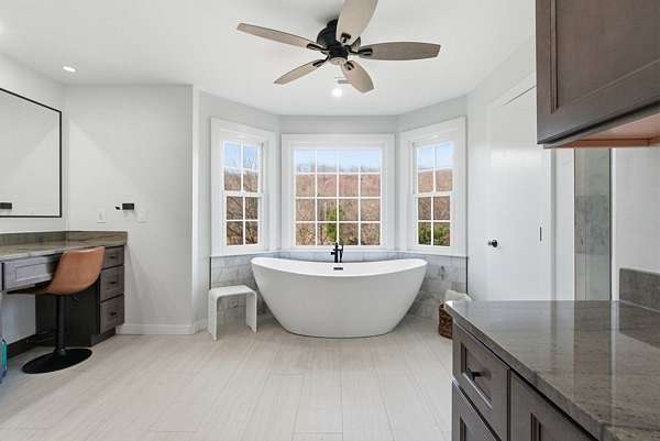A private home office on the main floor provides ideal work-from-home space, and a spacious main-level en suite bedroom offers flexibility for guests or multi-generational living. Upstairs, the primary suite boasts a private balcony, large renovated closet and a luxurious new bathroom.