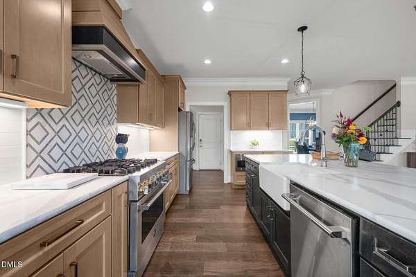 Unrivaled Custom Luxury on 2+ Acres - Minutes to Downtown Mebane Experience the perfect blend of craftsmanship and lifestyle in this custom-built home set on more than 2 acres, just minutes from Bright Penny Brewing, boutique shopping, and all that downtown Mebane has to offer. Step inside and you'll be greeted by a sun-drenched open layout with rich engineered hardwoods, custom built-ins, and a cozy fireplace. The designer kitchen is a true showpiece, featuring a massive quartz island, farmhouse sink, warm earth-tone cabinetry, and a statement range hood-all flowing seamlessly into the dining and living spaces. The first-floor primary suite is a retreat of its own with heated floors, a soaking tub, picture-frame shower, and an oversized walk-in closet with custom built-ins. A dedicated office with French doors makes working from home both functional and stylish. Upstairs, two bedrooms connect through a Jack and Jill bath, while a private guest suite with full bath offers flexibility for visitors or multigenerational living. An expansive bonus room and multiple walk-in storage areas ensure you'll never run out of space. Everyday living is elevated with an oversized laundry room complete with quartz counters, sink, and cabinetry, plus a stylish drop zone with its own side entry. Outside, a covered back porch overlooks 2+ acres of privacy-perfect for cookouts, morning coffee, or evenings under the stars. Opportunities like this are rare in Mebane. Don't miss your chance to own a custom retreat that offers both small-town charm and modern luxury. 106 Garrison Farm Road - Where design meets lifestyle.