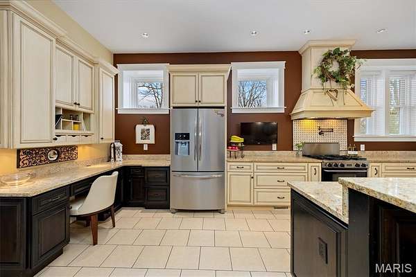 The spacious living room is anchored by a Lennox Brentwood fireplace, creating a warm and inviting gathering space. The thoughtfully designed kitchen features ESM countertops, custom cabinetry, a tile backsplash accenting the cooking area, pot filler, breakfast bar, and walk-in pantry -- delivering both functionality and style. Just beyond, the heated three-season sunroom offers a peaceful retreat with scenic views of the surrounding acreage and seamless connection to the home.