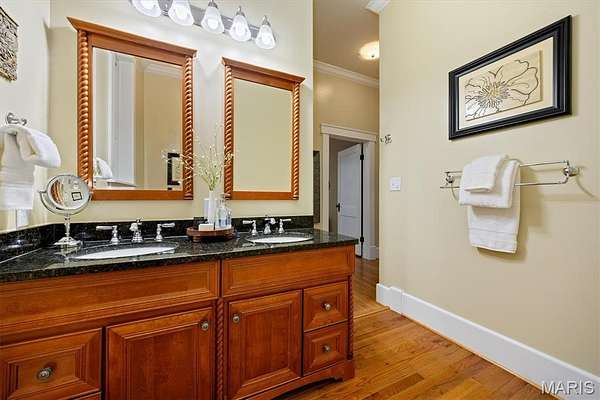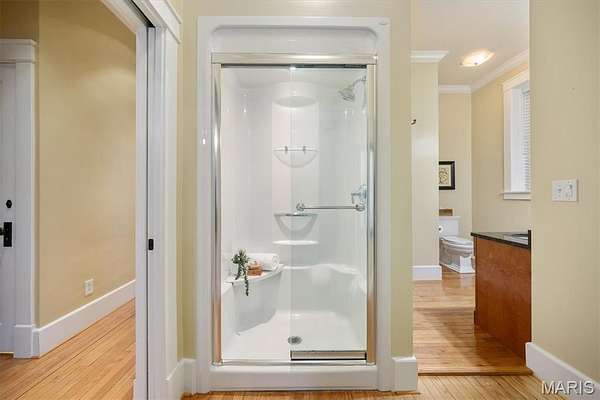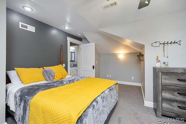 The main level includes a primary suite, two additional bedrooms, and two full baths. The primary suite features direct access to the ensuite bath, which also offers hallway access for added convenience. The additional bedrooms provide generous space for family, guests, or home office needs.