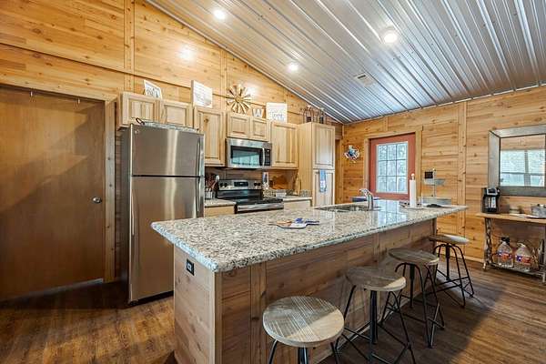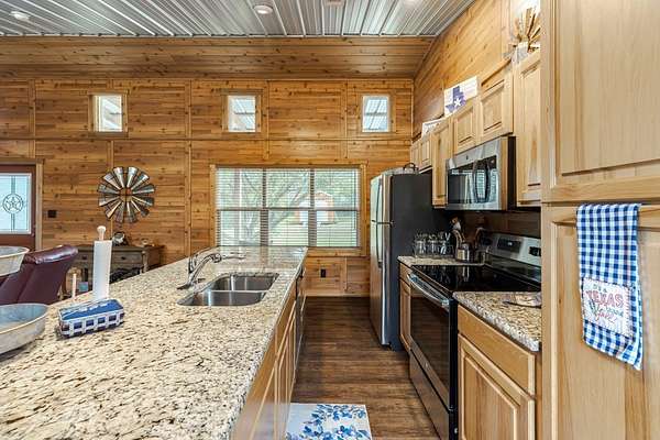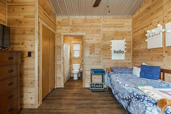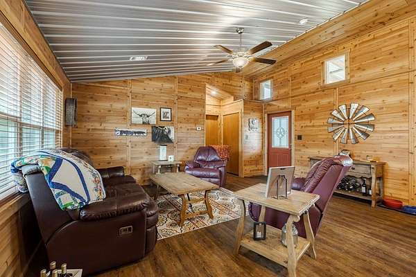 Welcome to your dream retreat nestled on over 14 acres of land, boasting breathtaking riverfront views. Step into rustic charm with this super cute 2/2 cabin, offering the perfect blend of comfort and serenity. Imagine waking up to the tranquil sound of flowing water and the gentle rustle of trees. Enjoy coffee or a glass of wine on the spacious covered front porch or charming pavilion. Whether you're seeking a weekend getaway or year-round haven, this property offers endless possibilities. Enjoy lazy afternoons fishing, kayaking, or simply unwinding by the riverside. With acres of land, the potential is limitless-build your dream home, start a hobby farm, or create a private oasis. Property currently has an ag valuation. Don't miss this rare opportunity to own your slice of paradise where nature meets luxury.