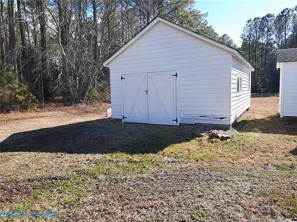 It's a cutie!! Two bedroom home with 2 Bathrooms on cleared 5.9933 Acres. Large covered front porch with ceiling fans. Nice size Living Room with gas fireplace and large Dining Room. Eat in Kitchen with pantry. Also large Sleeping porch on back of the house. Great for reading or taking a nap. The attic has been finished off and has two nice rooms for office, rec room or for crafts. Also make great TV rooms. Has bathroom upstairs with tub. The upstairs have window units but no heat. The Seller uses portable Verizon device when she is in town. All appliances convey and there is a bait freezer in shed. The carrier for the propane is Quarles Fuels. Bethel beach is just a few minutes down the road. The house has just been freshly painted inside and out.