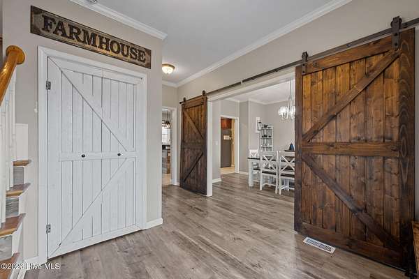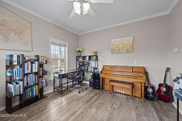 Welcome to 106 Lafitte Drive -- a spacious 4-bedroom, 2.5-bath home offering over 2,900 heated square feet in an exceptional waterfront-access community. This well-designed home features durable LVP and tile flooring throughout for easy maintenance and long-term value. The functional layout provides generous living space, and all appliances convey, including the washer and dryer -- making this home move-in ready. Step outside to a large fenced backyard with multiple sheds/workshops, providing excellent storage, hobby space, or room for projects. The spacious garage is built for more than parking, featuring a built-in bar area perfect for entertaining and gatherings. Located in a desirable subdivision with water access and a private boat ramp, this property is ideal for coastal living. Just minutes to the seaside town of Swansboro and within 20 minutes of the beautiful Atlantic Ocean beaches, you'll enjoy both convenience and lifestyle. A rare opportunity to own space, functionality, and coastal access all in one.