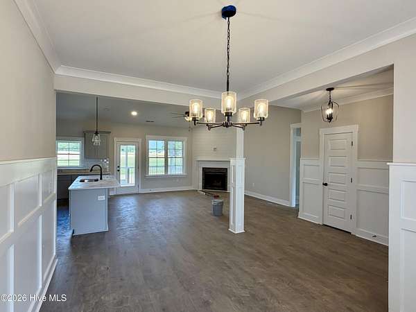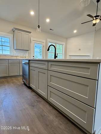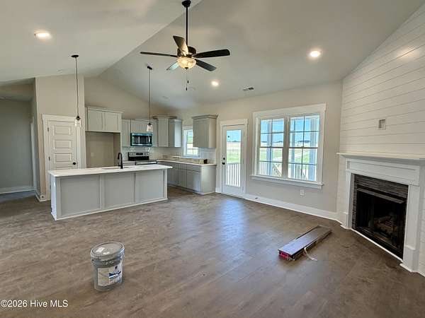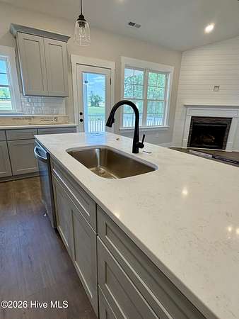- Gas Log, High Ceilings, Kitchen Island, Master Downstairs
